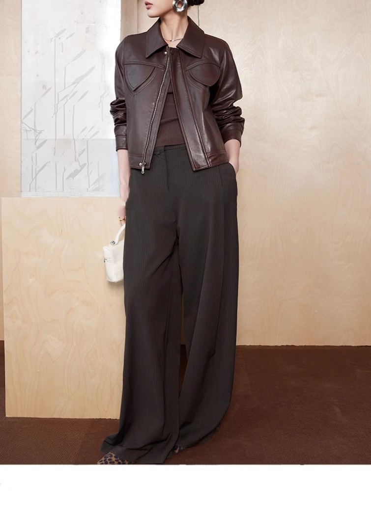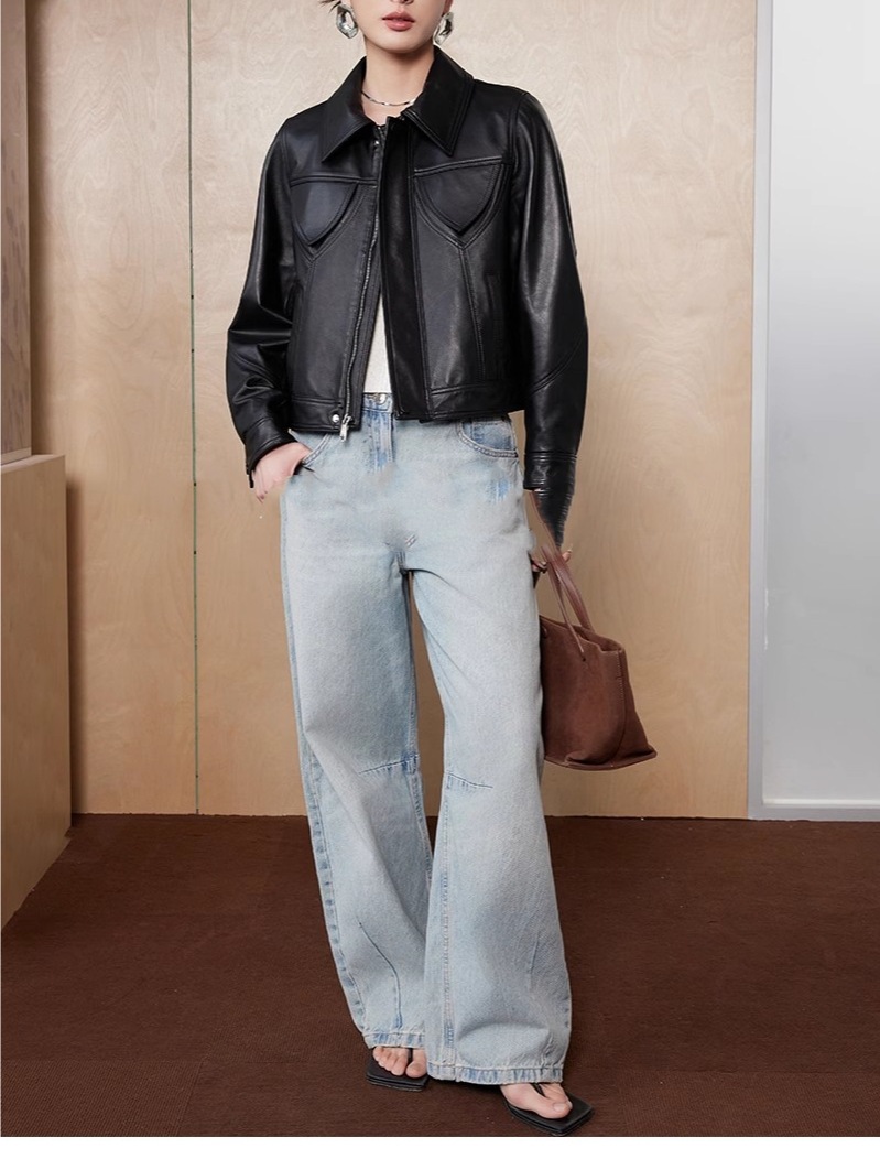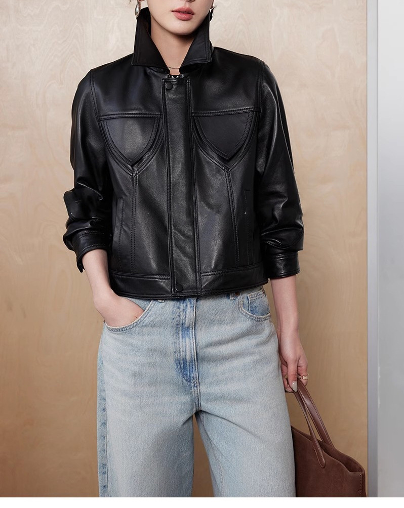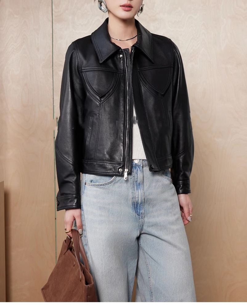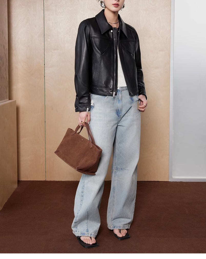 [빈티지 가죽] 미국 레트로 가죽 탑 레이어 야채 태닝 양가죽 짧은 재킷 코트 가죽 여성 2025스토어 가기
