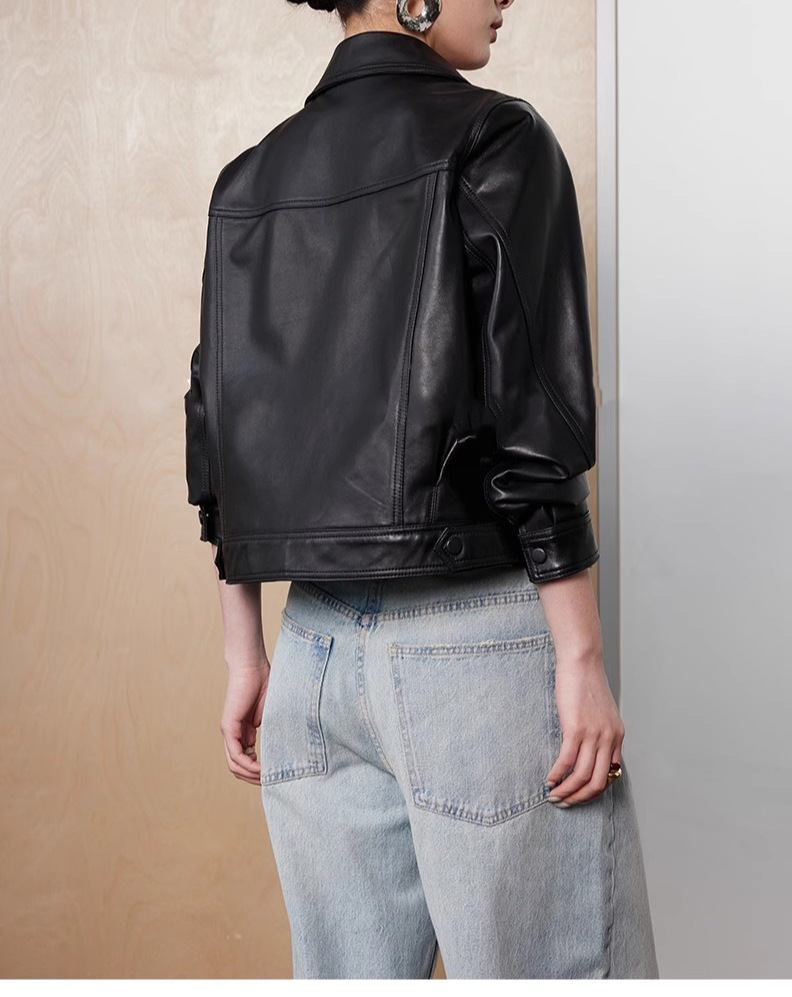 [빈티지 가죽] 미국 레트로 가죽 탑 레이어 야채 태닝 양가죽 짧은 재킷 코트 가죽 여성 2025