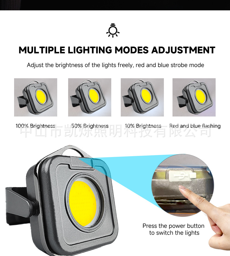 COB 키체인 라이트 강한 빛 충전식 손전등 야외 다기능 휴대용 작업등 TOP-C 캠핑용