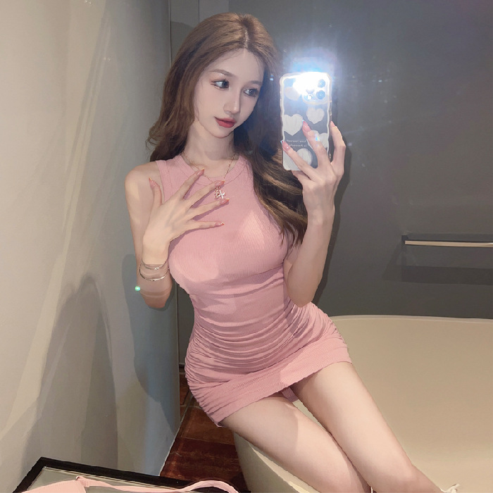 순수한 욕망 뜨거운 소녀 섹시한 주름 둥근 목 민소매 조끼 엉덩이 스커트 여름 슬림핏 높은 허리 유행 원피스 여성스토어 가기
