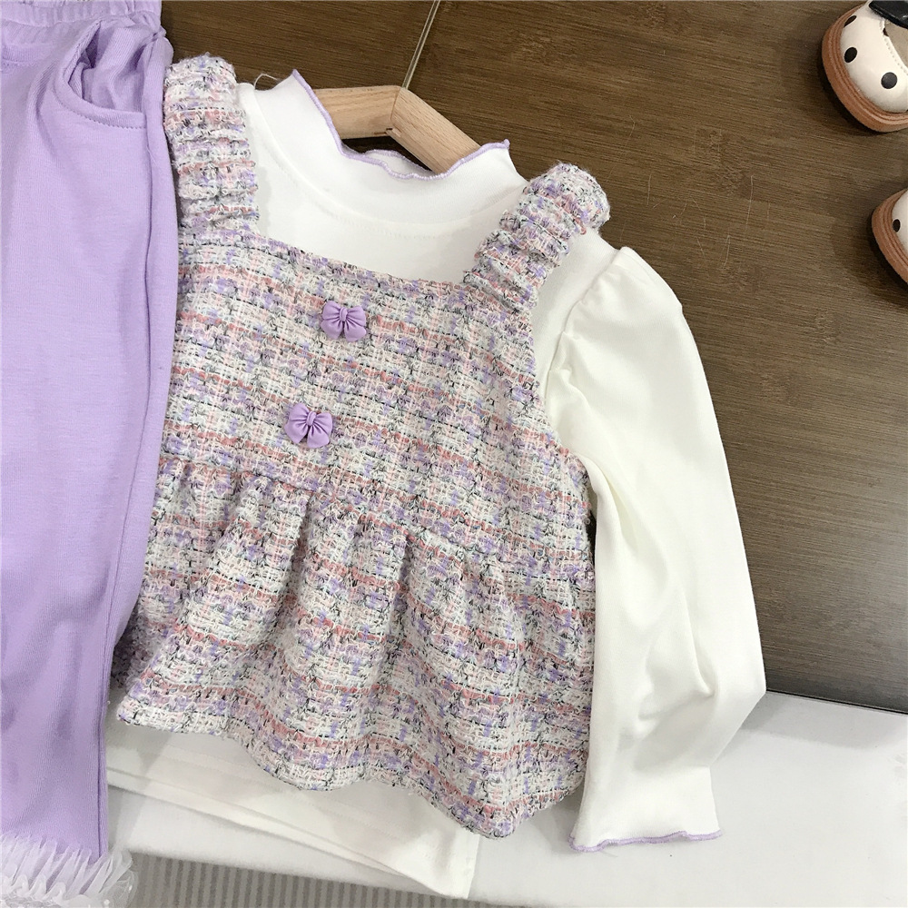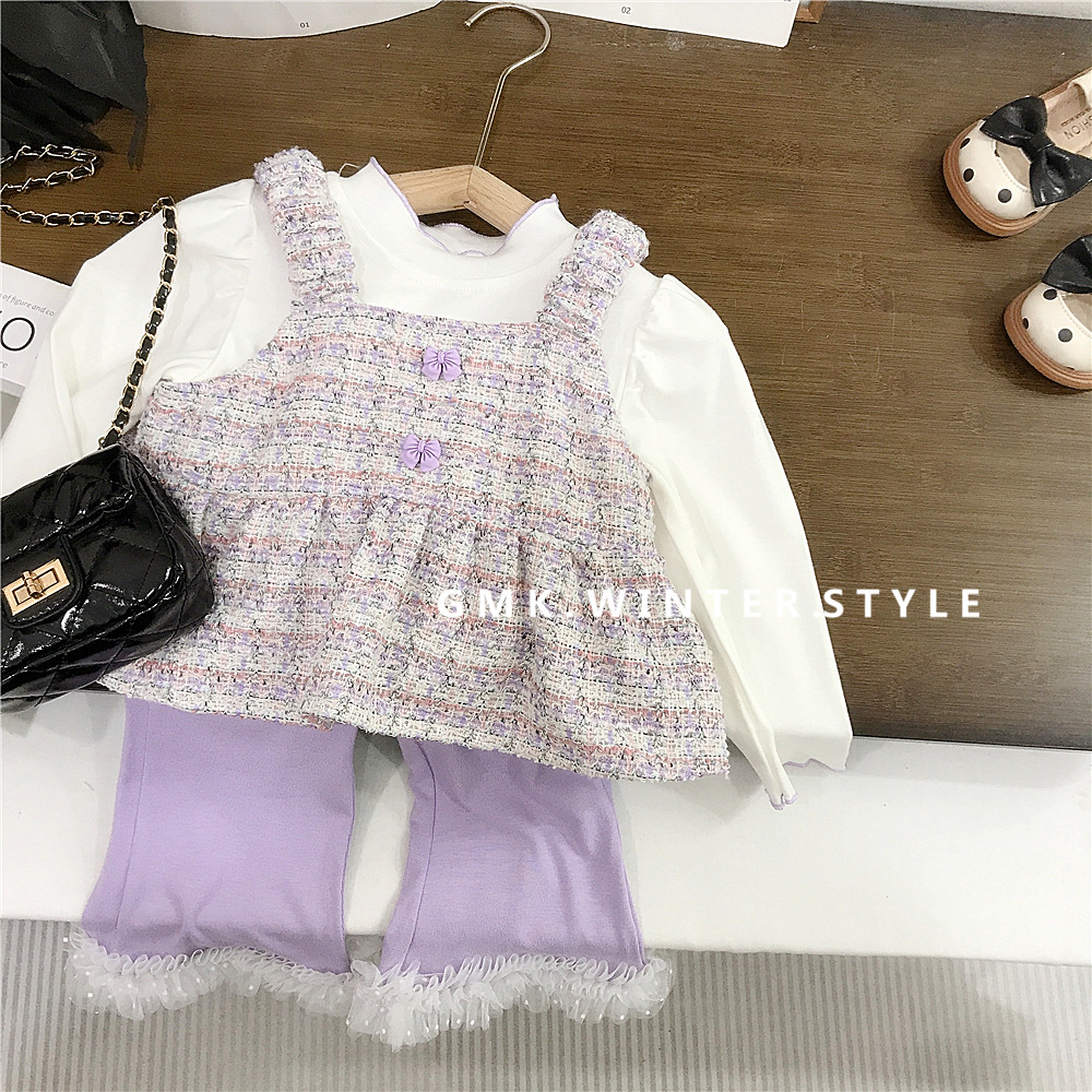 소녀의 작은 샤넬 스타일 조끼 세트 봄과 가을 소녀의 아기 소녀의 서양 스타일 유행 봄 원피스 달콤한 3 피스 세트스토어 가기