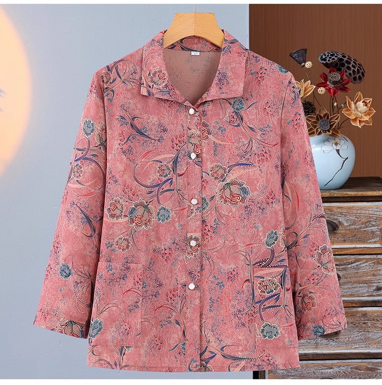 노년 여성 할머니 여름 셔츠 얇은 어머니의 봄 탑 서양 옷 노년 아내 70 80스토어 가기