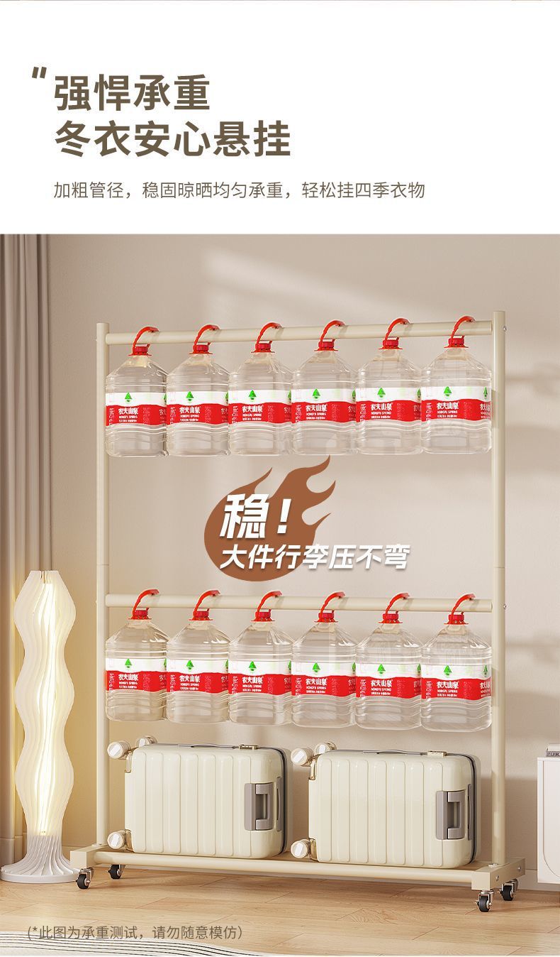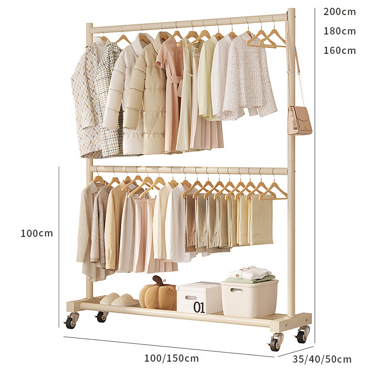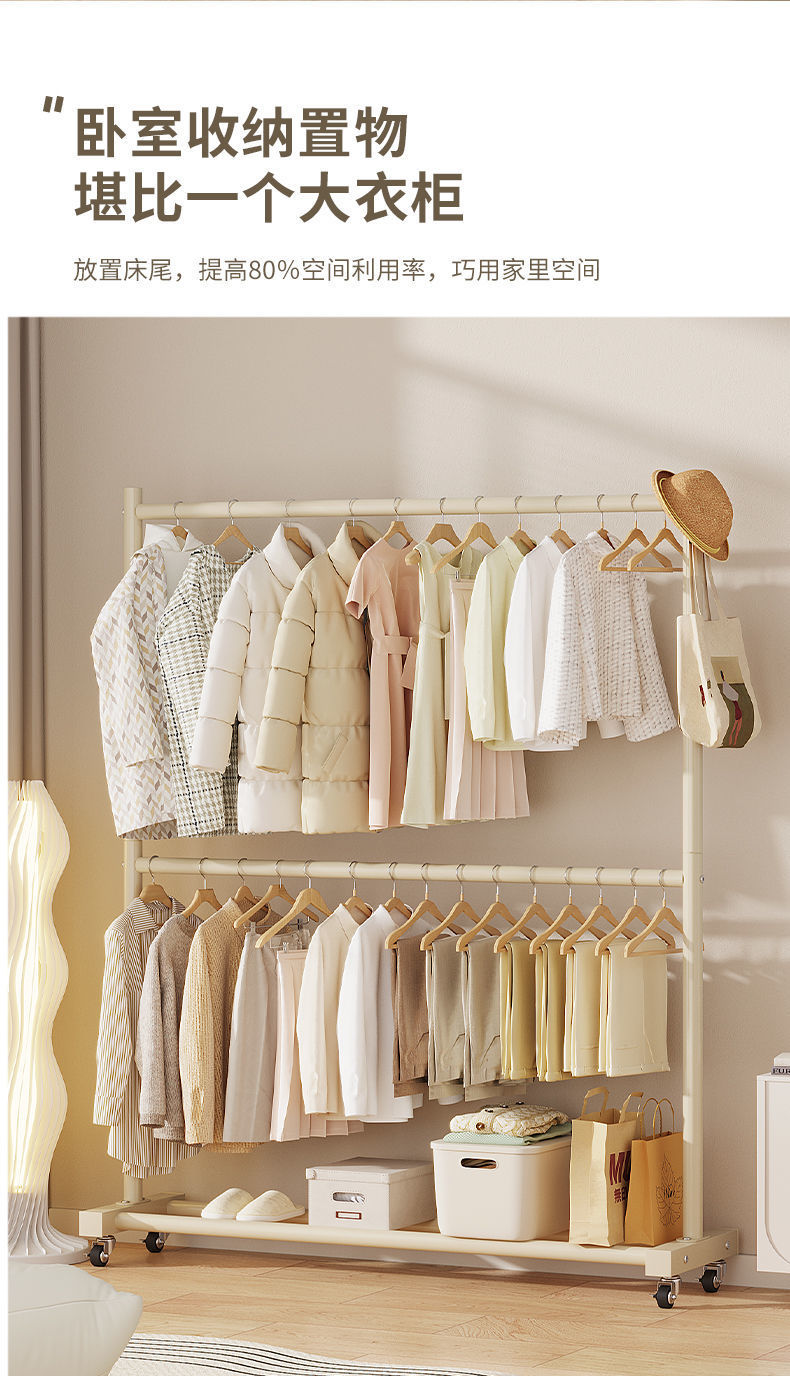 건조 랙 크림 바람 더블 레이어 휠 두꺼운 스틸 파이프 강하고 내구성 임대 하우스 의류 보관 랙 바닥 수직
