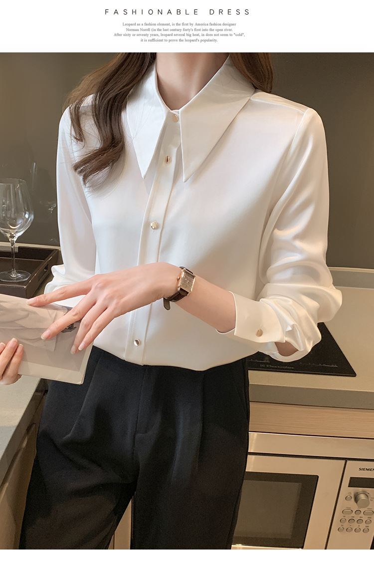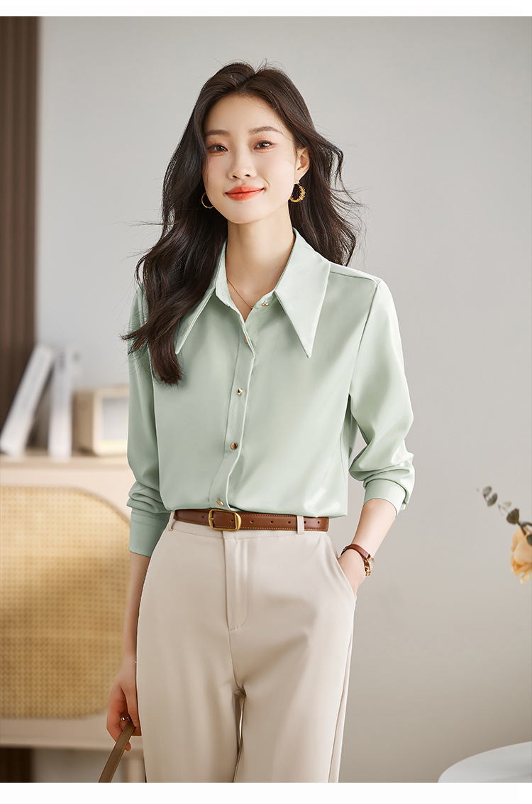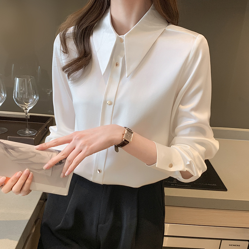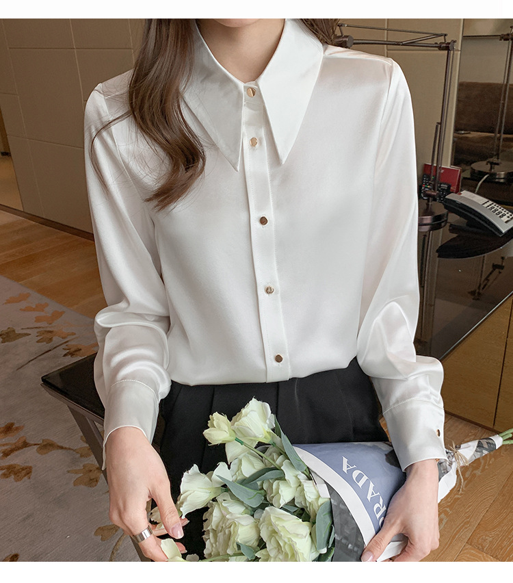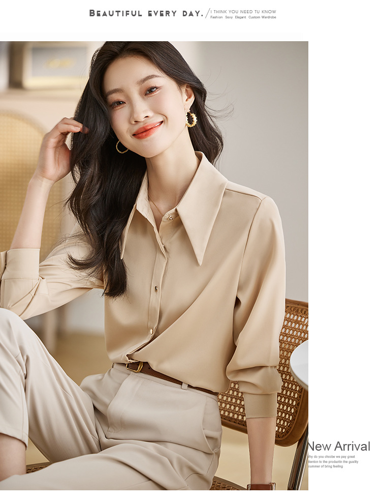 2025 봄 Acetic Acid Satin 셔츠 디자인 센스 틈새 의상 패션 우아한 전문 라이트 성숙한 스타일 여성 의류스토어 가기