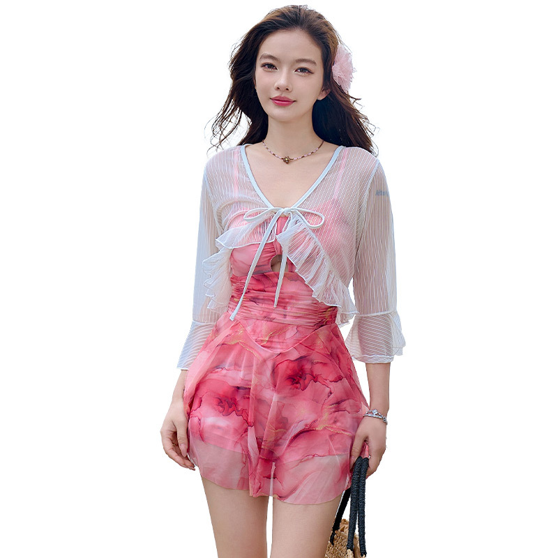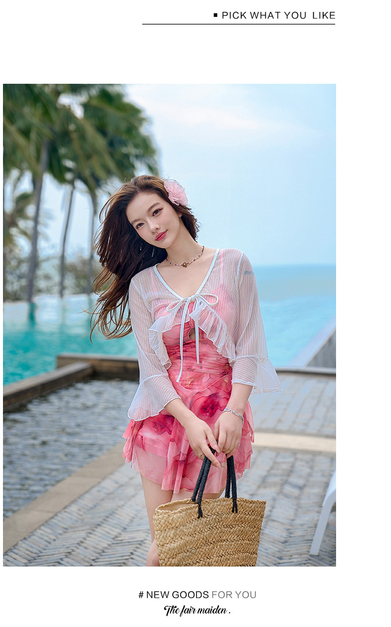 2025 새로운 스타일 스웨트 셔츠 여성용 수영복 여성 배꼽 커버 슬리밍 보수적 인 약간의 뚱뚱한 소녀의 고기 커버 온천 수영복
