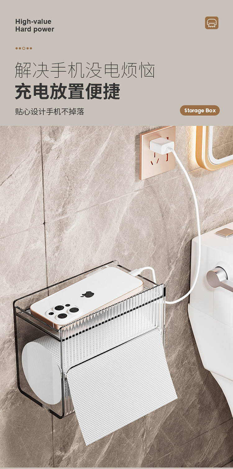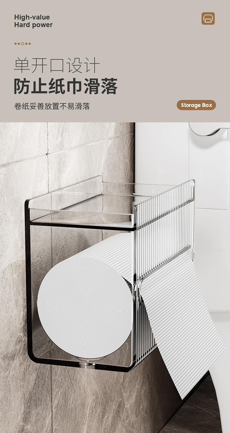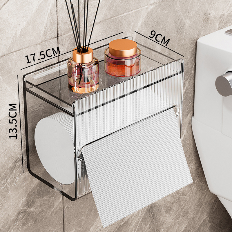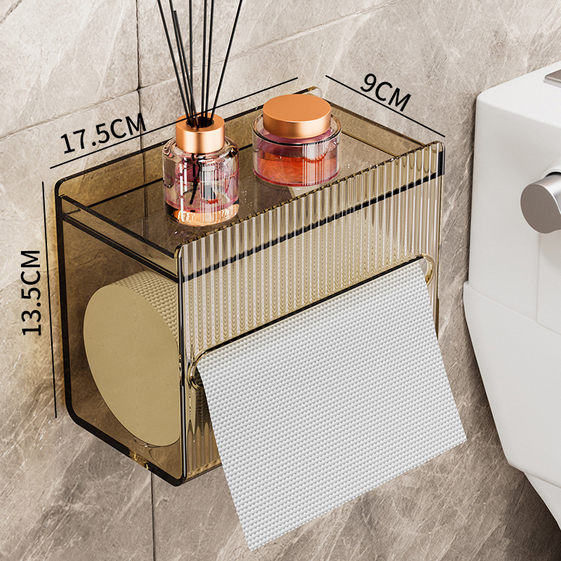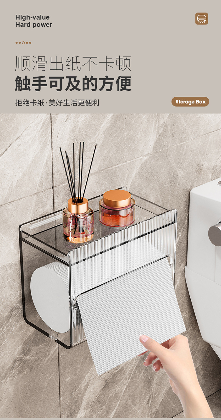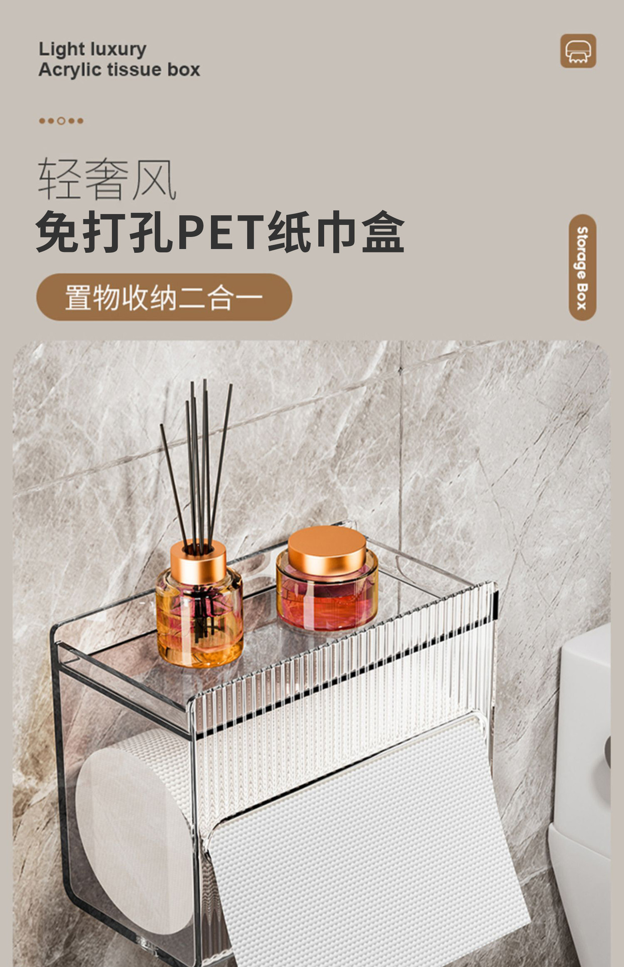 화장실 티슈 박스 벽걸이 형 펀치 프리 방수 화장실 종이 상자 가정용 투명 화장실 종이 상자 라이트 럭셔리