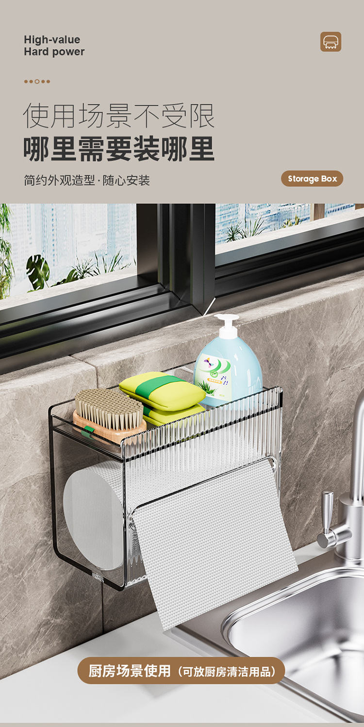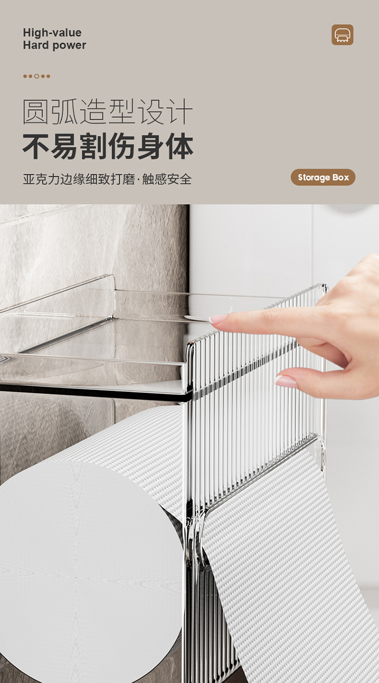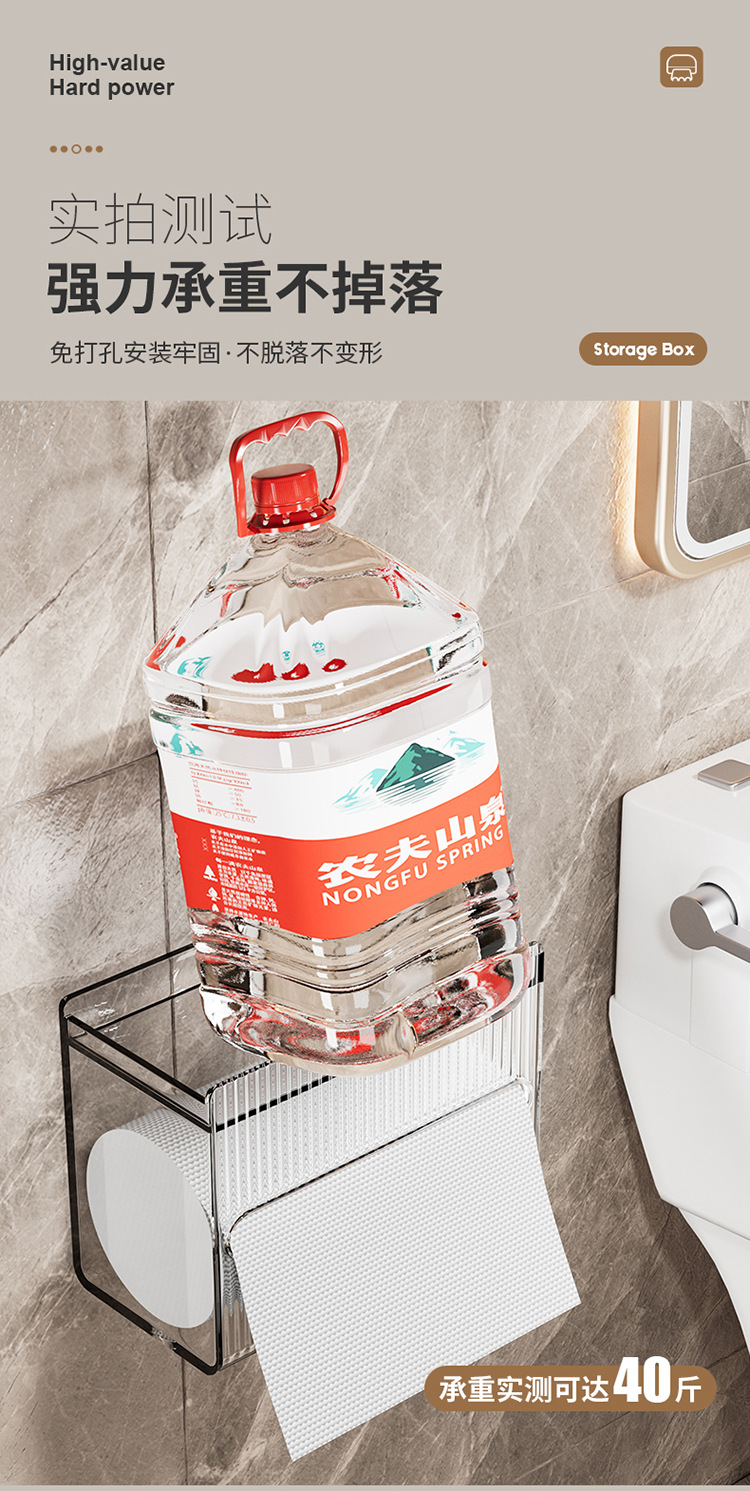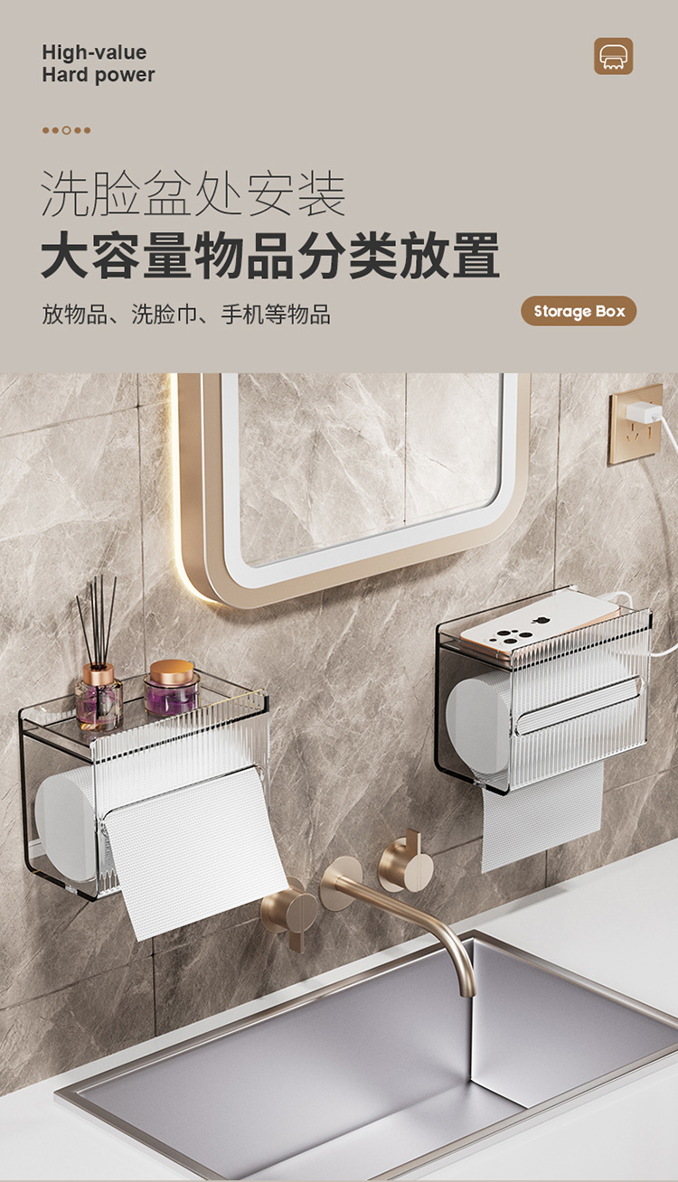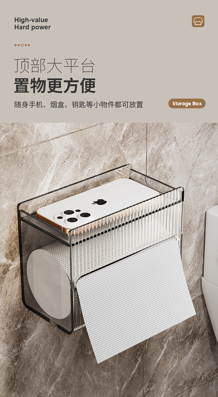 화장실 티슈 박스 벽걸이 형 펀치 프리 방수 화장실 종이 상자 가정용 투명 화장실 종이 상자 라이트 럭셔리
