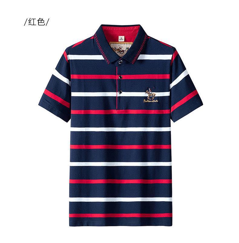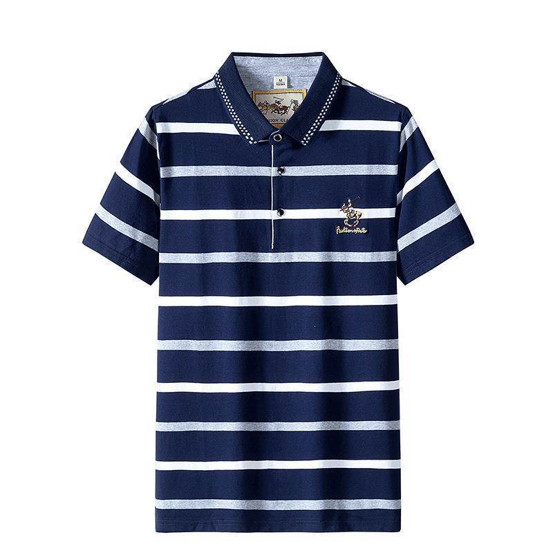 순면 자수 줄무늬 폴로 셔츠 남자의 자수 빛 사업 줄무늬 티셔츠 여름 짧은 소매 스트라이프 스트레치 옷깃 티셔츠
