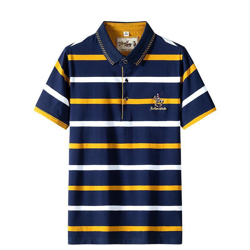 순면 자수 줄무늬 폴로 셔츠 남자의 자수 빛 사업 줄무늬 티셔츠 여름 짧은 소매 스트라이프 스트레치 옷깃 티셔츠스토어 가기