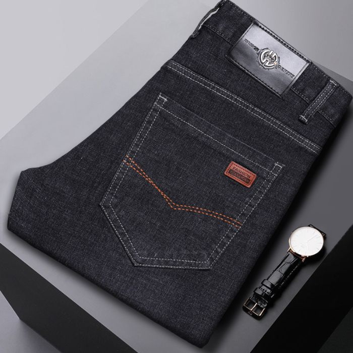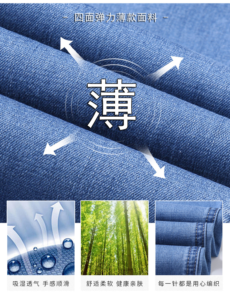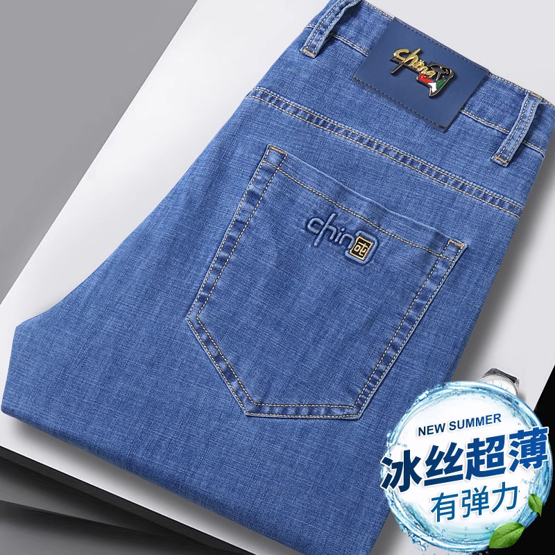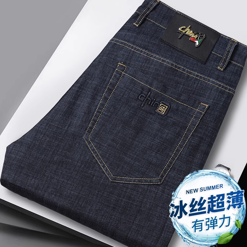 여름 얇은 얼음 실크 청바지 남자의 느슨한 스트레이트 하이 엔드 스트레치 남자 바지 여름 초박형 캐주얼 긴 바지