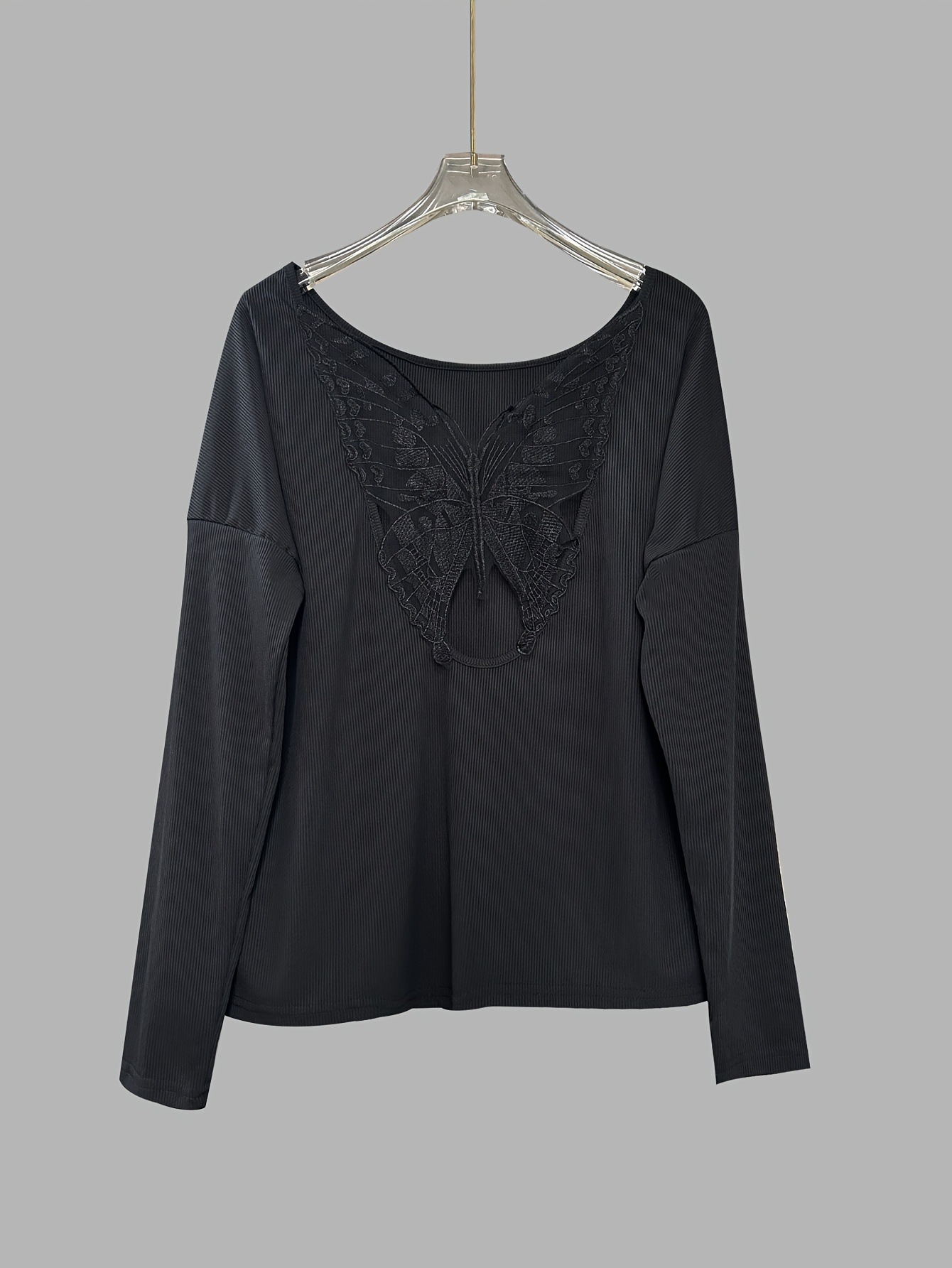 국경 간 아마존 2025 새로운 유럽과 미국의 니트 탑 핏 스트립 라운드 넥 솔리드 컬러 긴 소매 봄과 여름 원근법 티셔츠스토어 가기