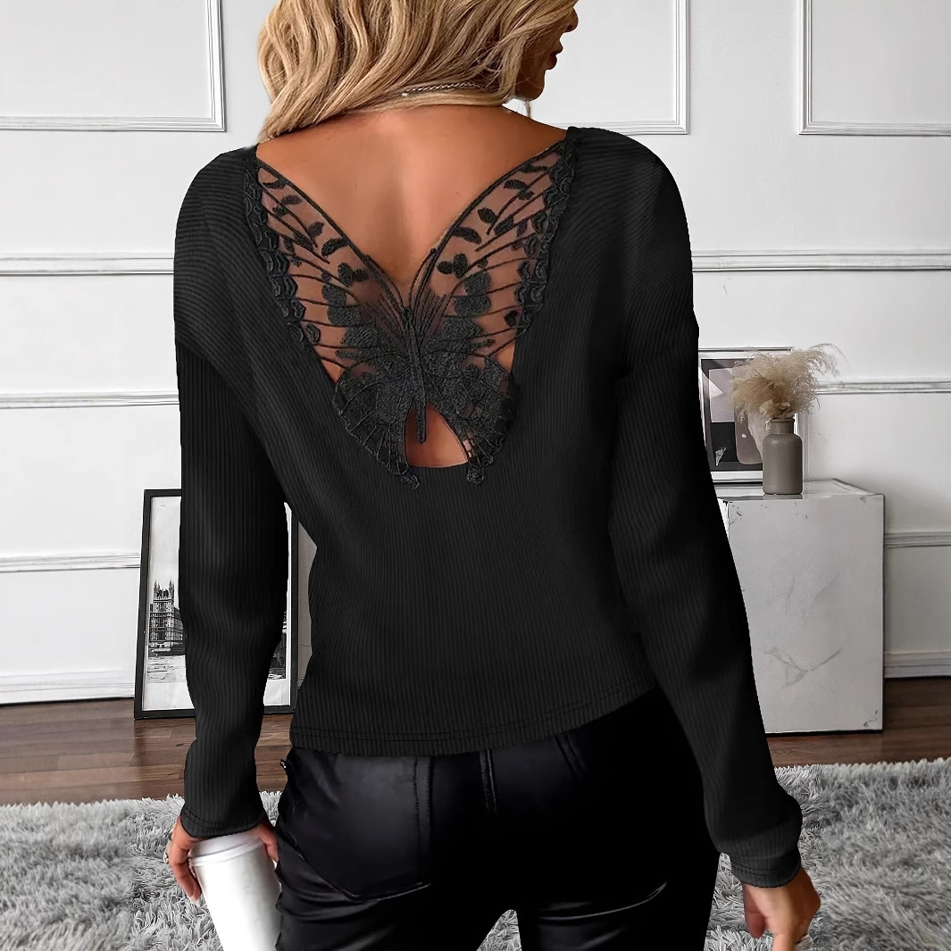 국경 간 아마존 2025 새로운 유럽과 미국의 니트 탑 핏 스트립 라운드 넥 솔리드 컬러 긴 소매 봄과 여름 원근법 티셔츠