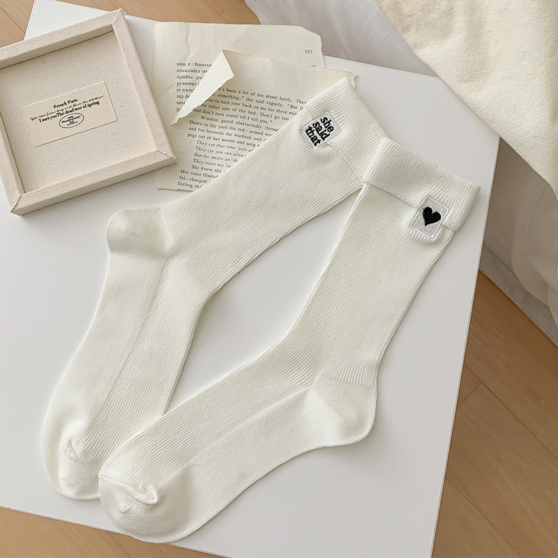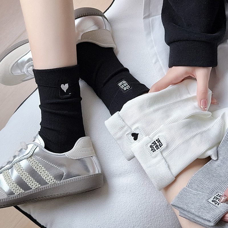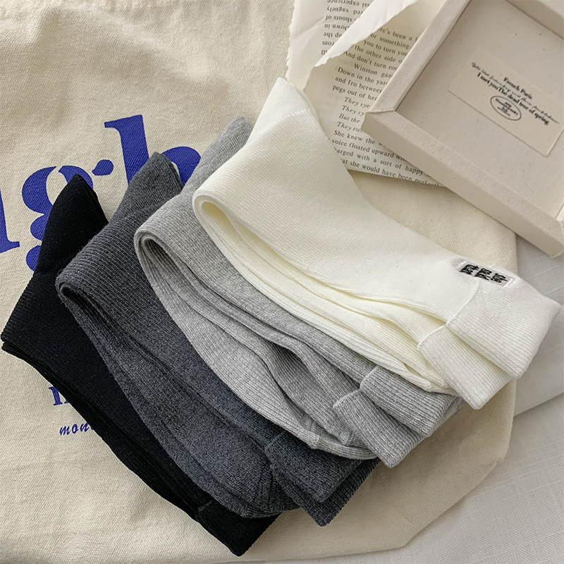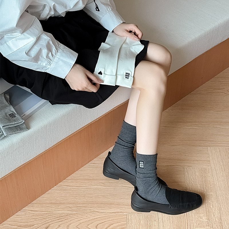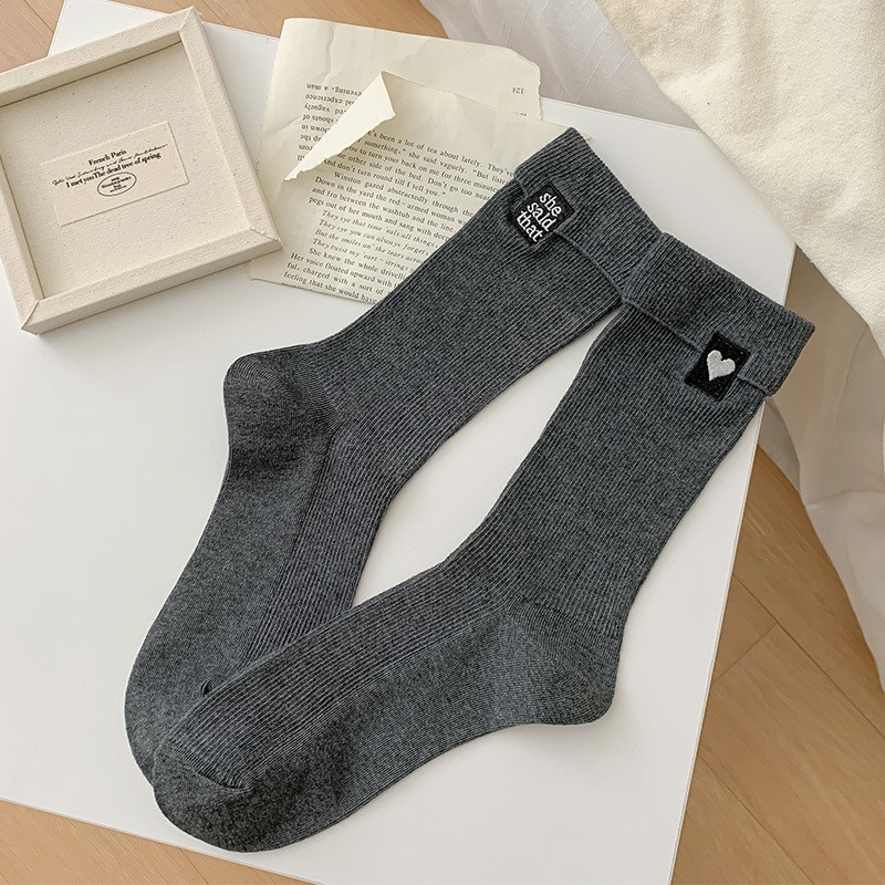 일본식 간단한 흑백 회색 더미 양말 한국 스타일 칼리지 스타일 그레이 미드 튜브 양말 편지 자수 AB