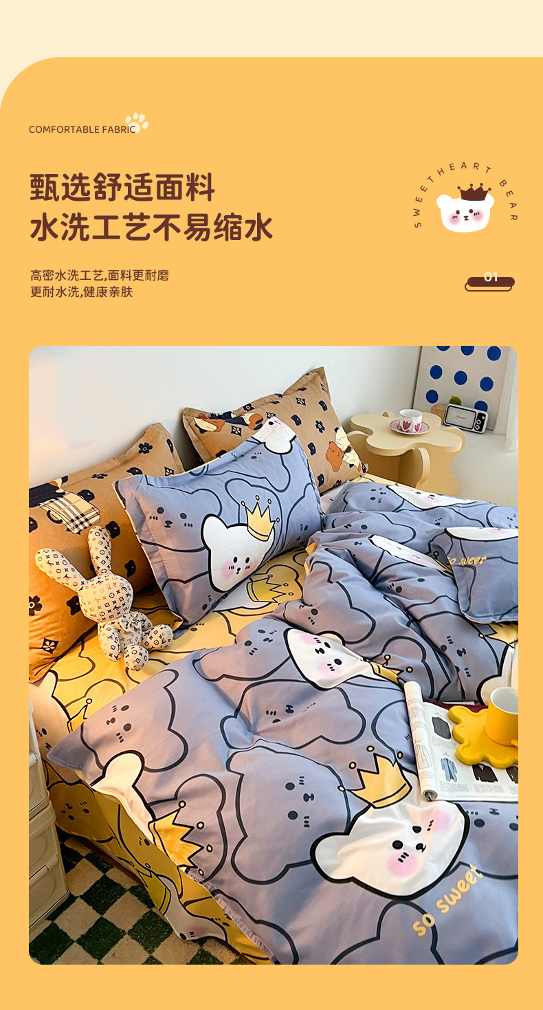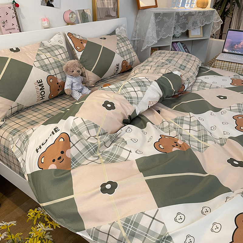 침대 시트 4 피스 퀼트 커버 봄 싱글 학생 기숙사 3 피스 샌딩 원피스 퀼트 커버 만화 침대 Zhao Zhiwu스토어 가기