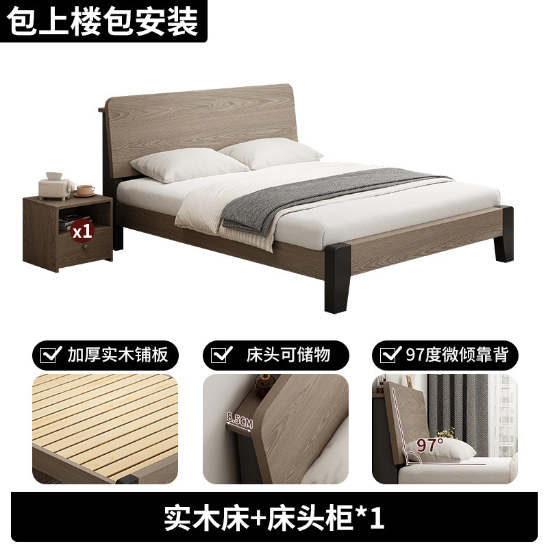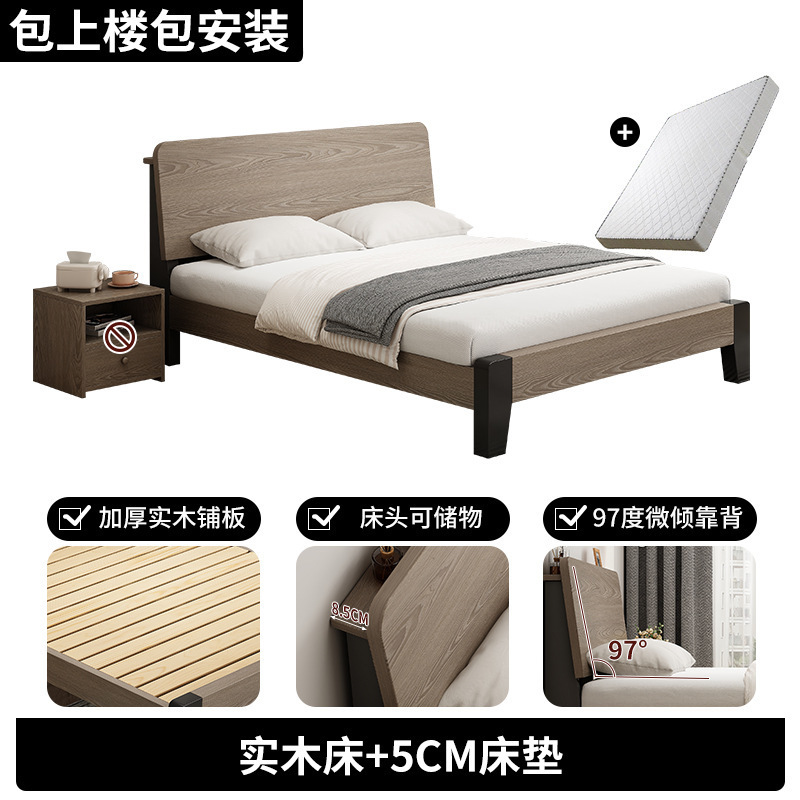 단단한 나무 침대 1.8 미터 더블 침대 마스터 침실 작은 아파트 1.5 미터 저장 침대 임대 집 1.2 미터 싱글 침대 프레임스토어 가기