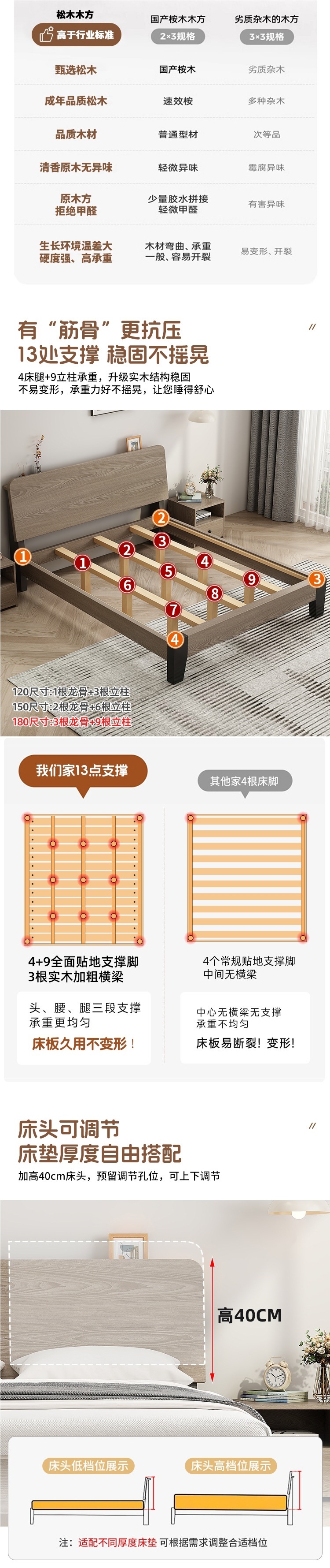 • 원목 침대 + 20cm 코코넛 야자 스프링 매트리스 + 침대 옆 테이블 * 1 [위층 포함]