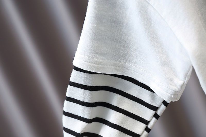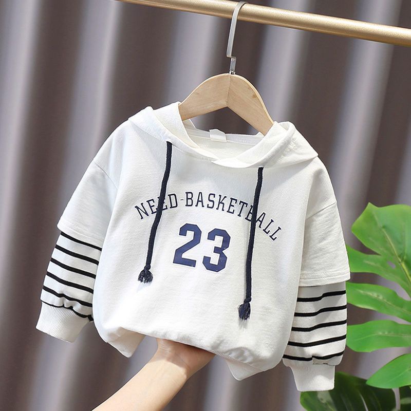봄과 가을 남녀 아동복 스웨트 셔츠 아기의 서양식 어린이 성격 유행 브랜드 한국 알파벳 줄무늬 가짜 2 피스 후드