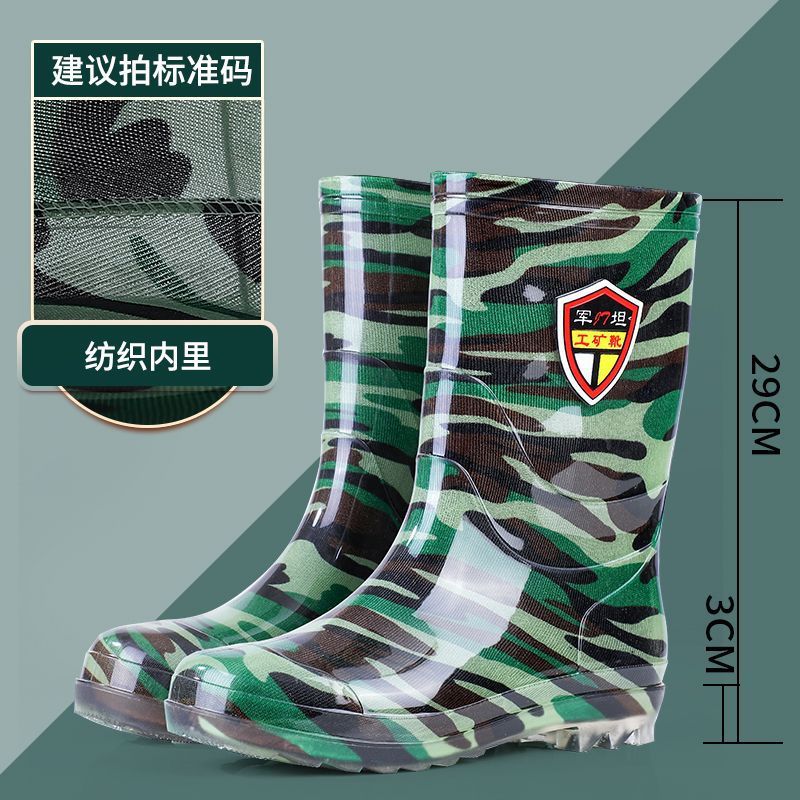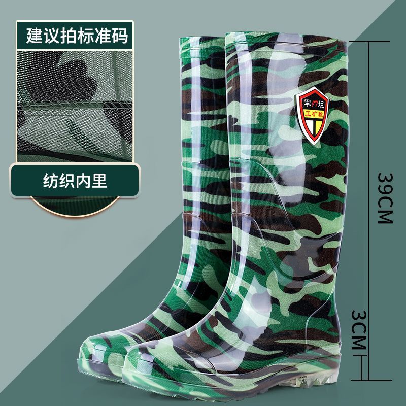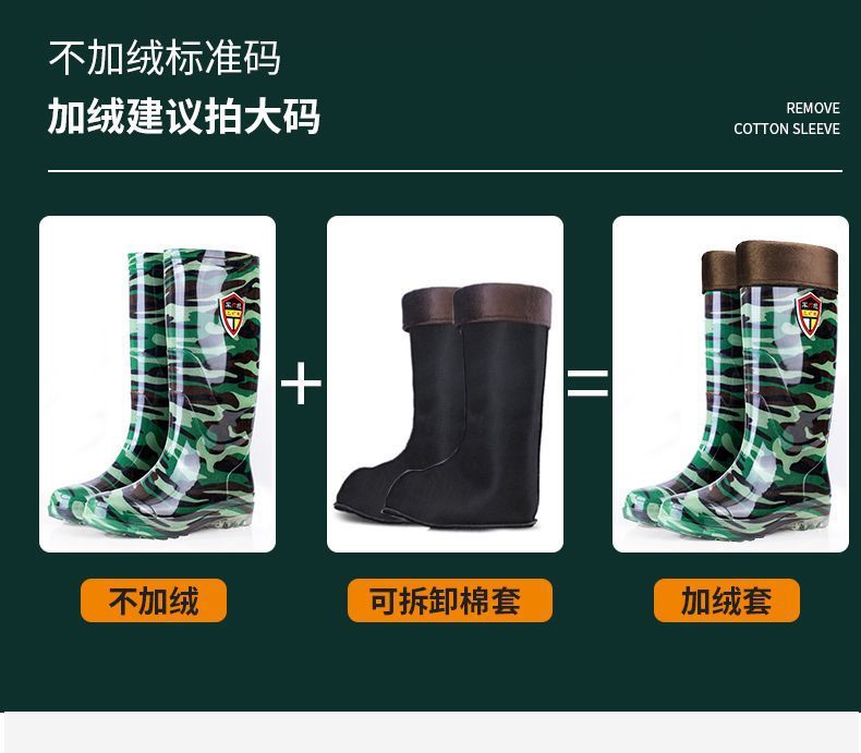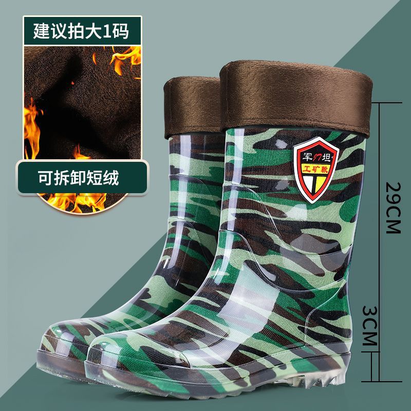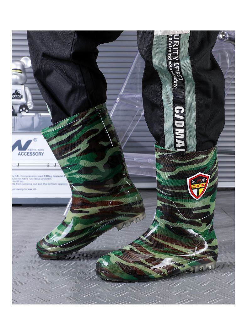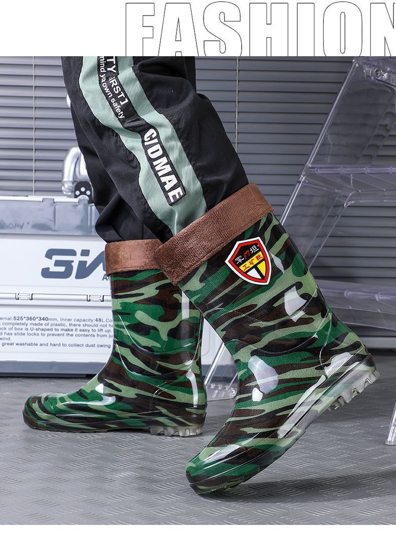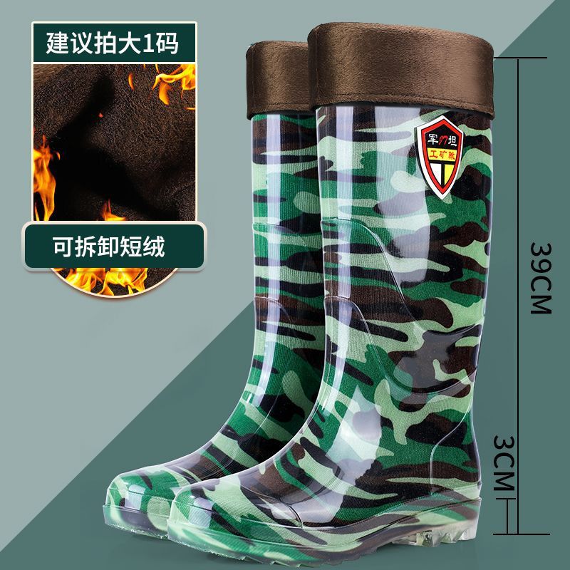 물 신발 남성 긴 배럴 노동 보호 위장 비 신발 장화 긴 배럴 기모 따뜻한 중간 배럴 내마모성 낚시 고무 신발 및 부츠 건설 현장스토어 가기