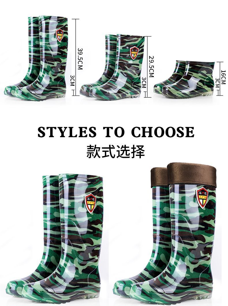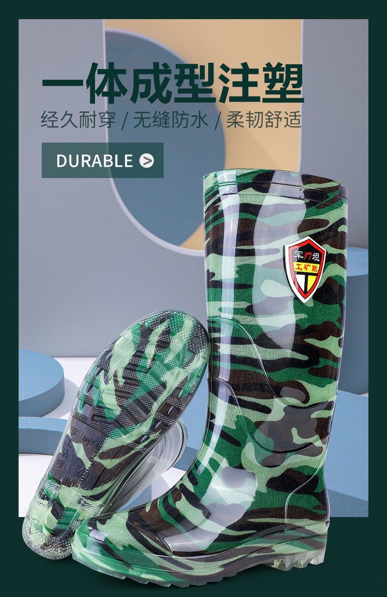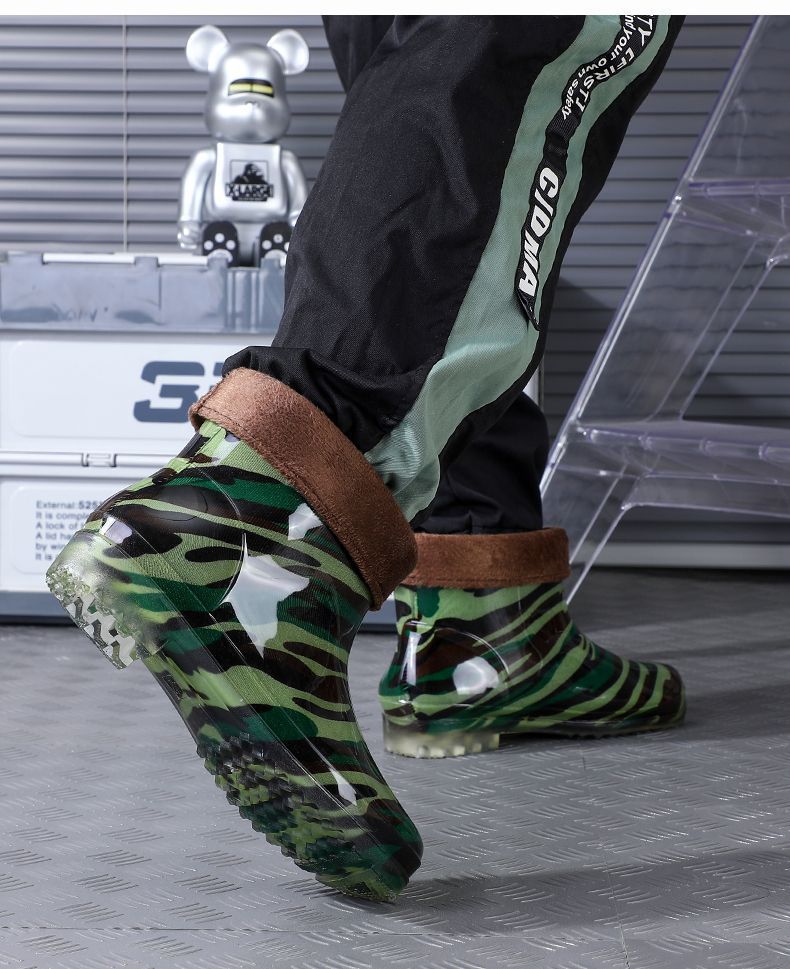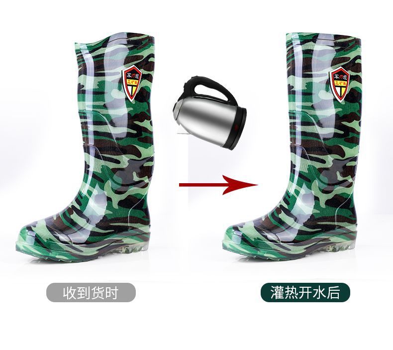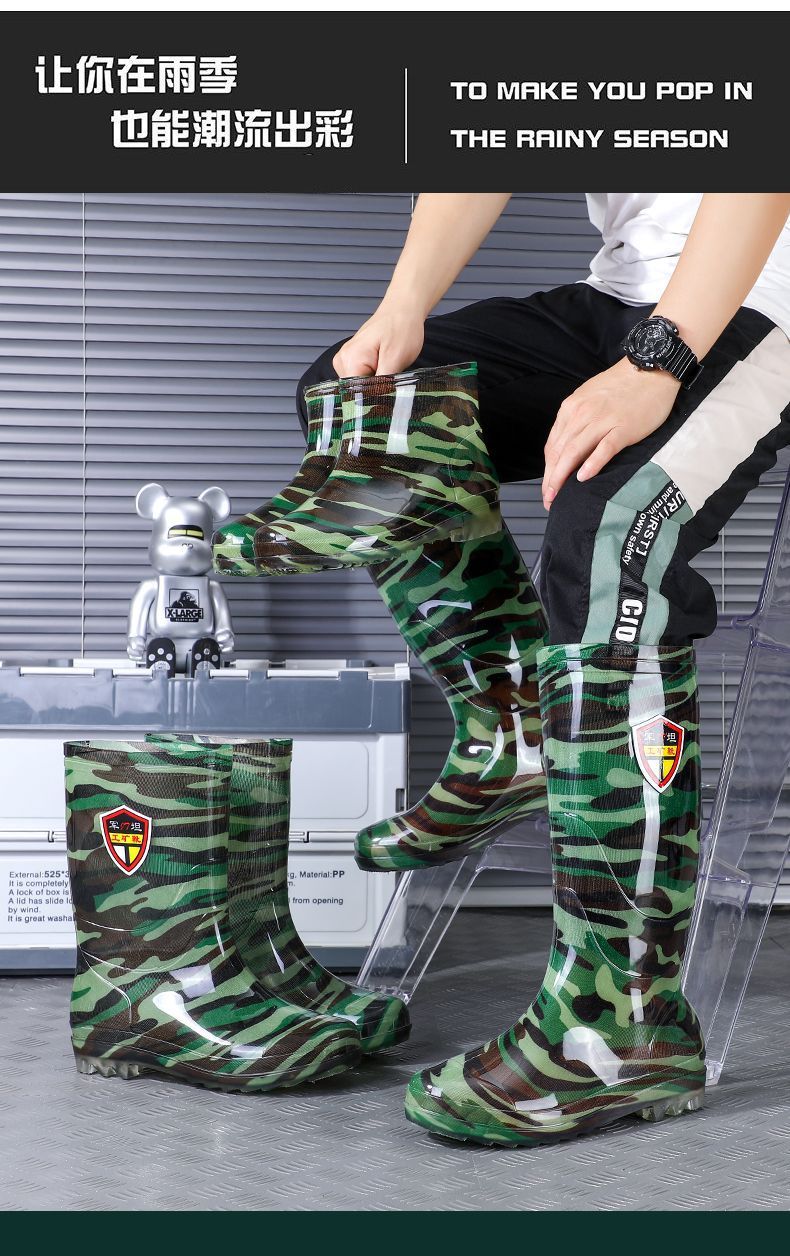 물 신발 남성 긴 배럴 노동 보호 위장 비 신발 장화 긴 배럴 기모 따뜻한 중간 배럴 내마모성 낚시 고무 신발 및 부츠 건설 현장스토어 가기