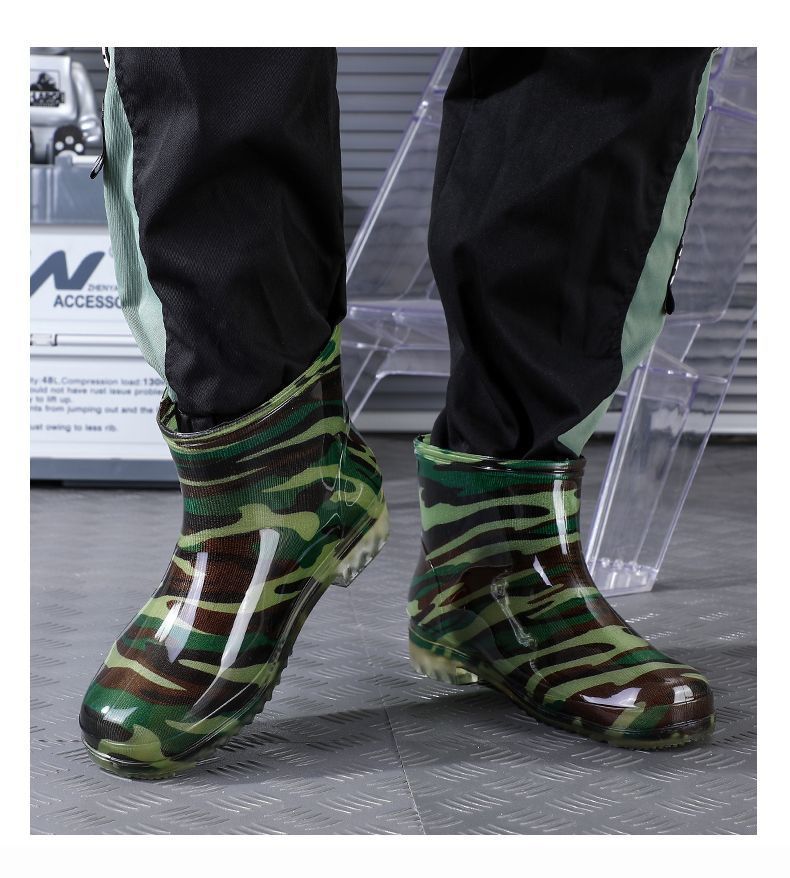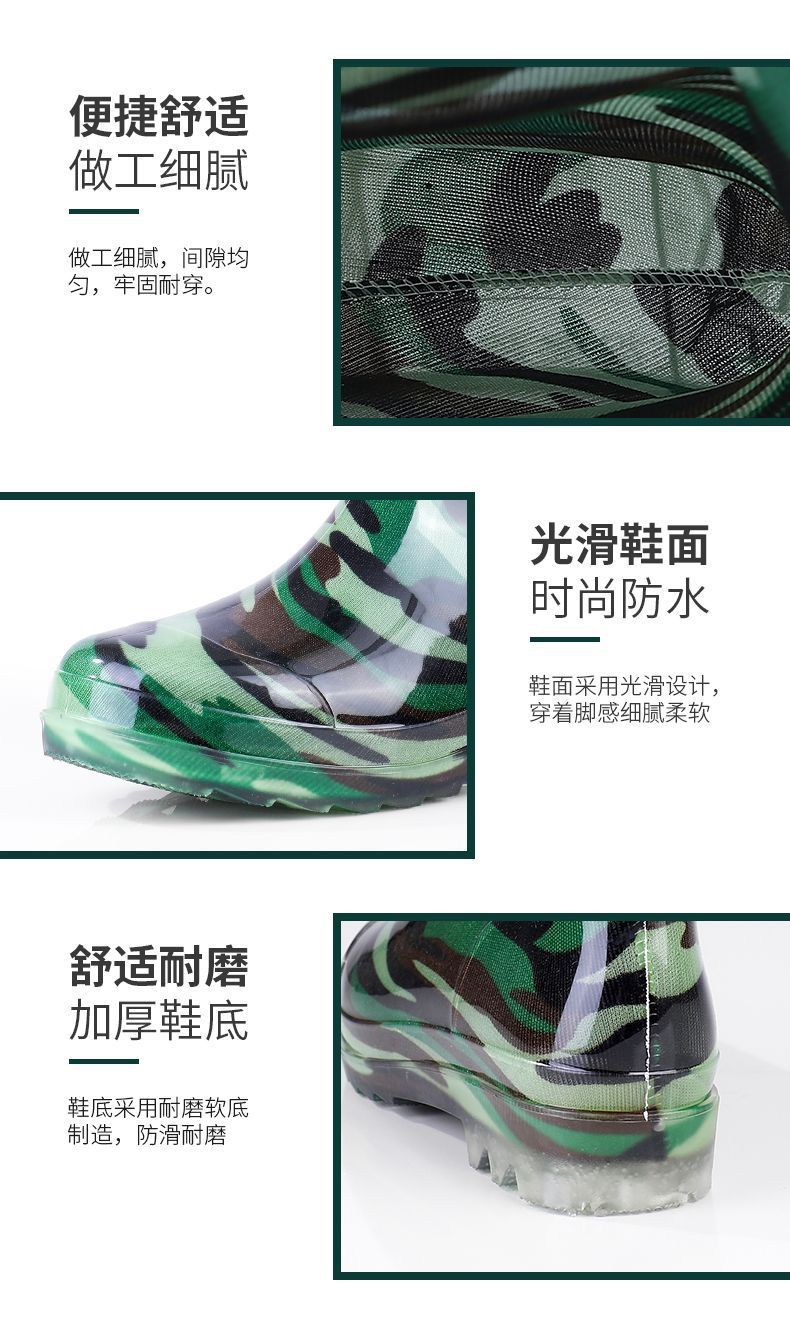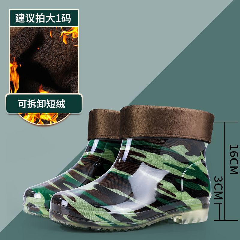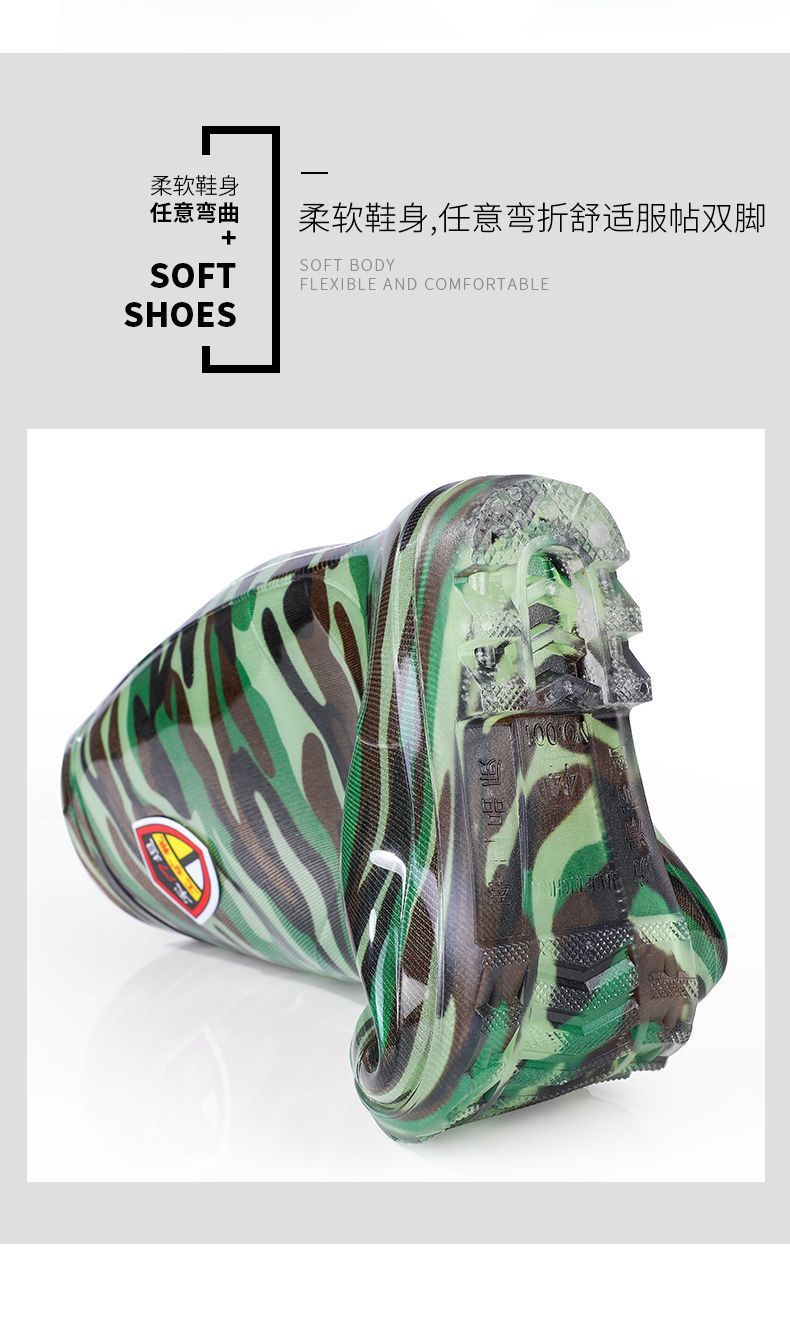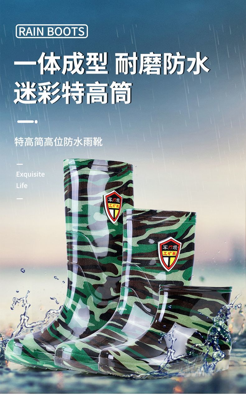 물 신발 남성 긴 배럴 노동 보호 위장 비 신발 장화 긴 배럴 기모 따뜻한 중간 배럴 내마모성 낚시 고무 신발 및 부츠 건설 현장스토어 가기