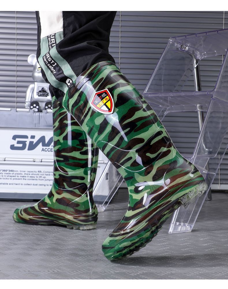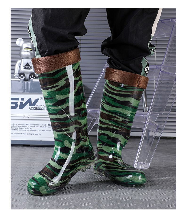 물 신발 남성 긴 배럴 노동 보호 위장 비 신발 장화 긴 배럴 기모 따뜻한 중간 배럴 내마모성 낚시 고무 신발 및 부츠 건설 현장