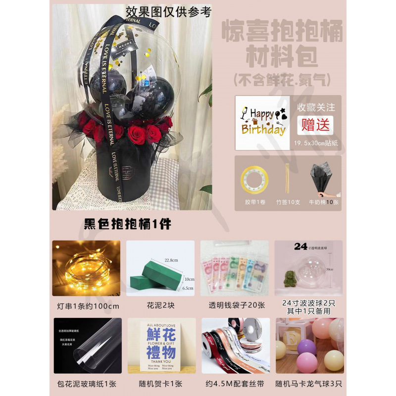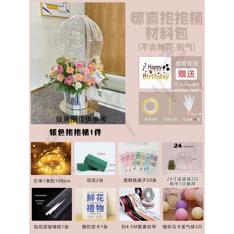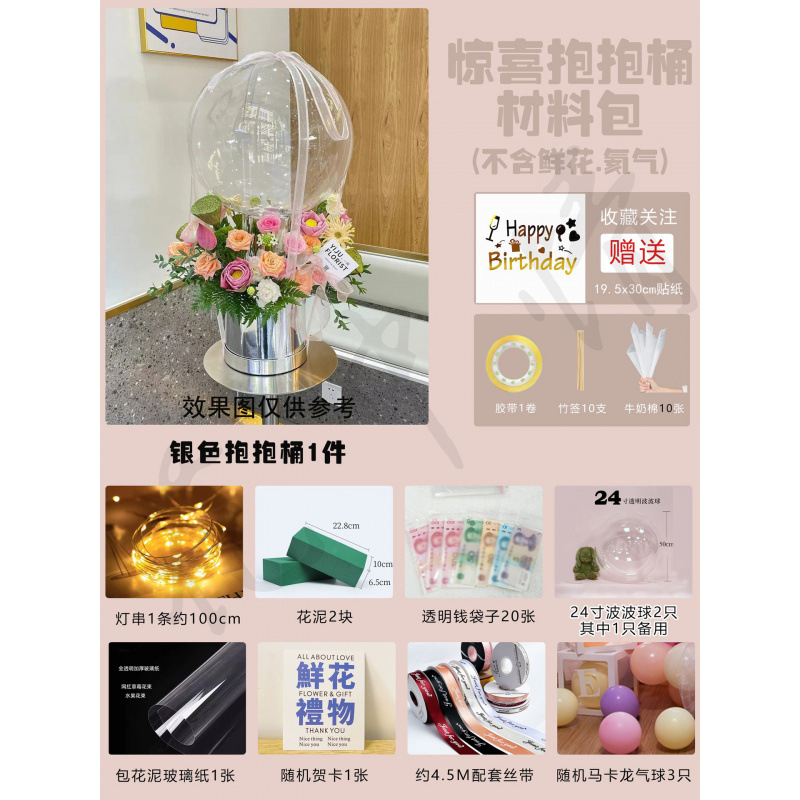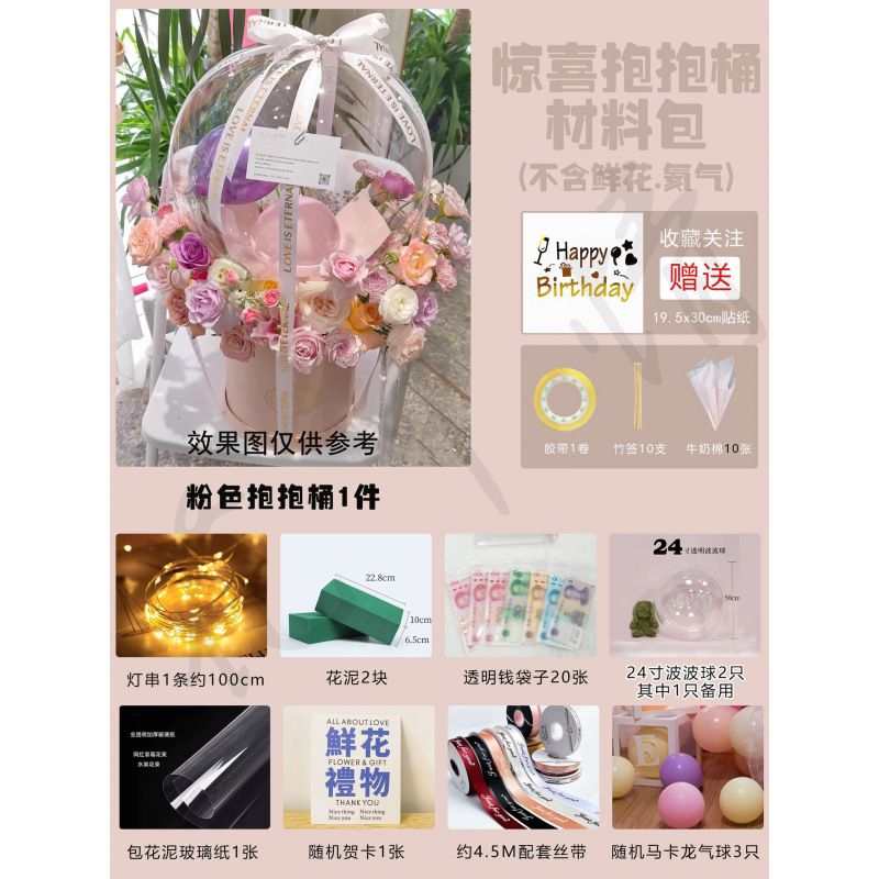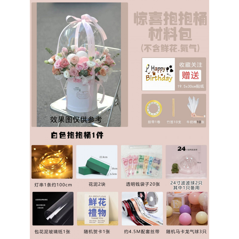 꽃 포옹 버킷 풍부한 꽃 깜짝 생일 풍선 웨이브 볼 꽃다발 떠 돈 버킷 DIY 소재 가방스토어 가기