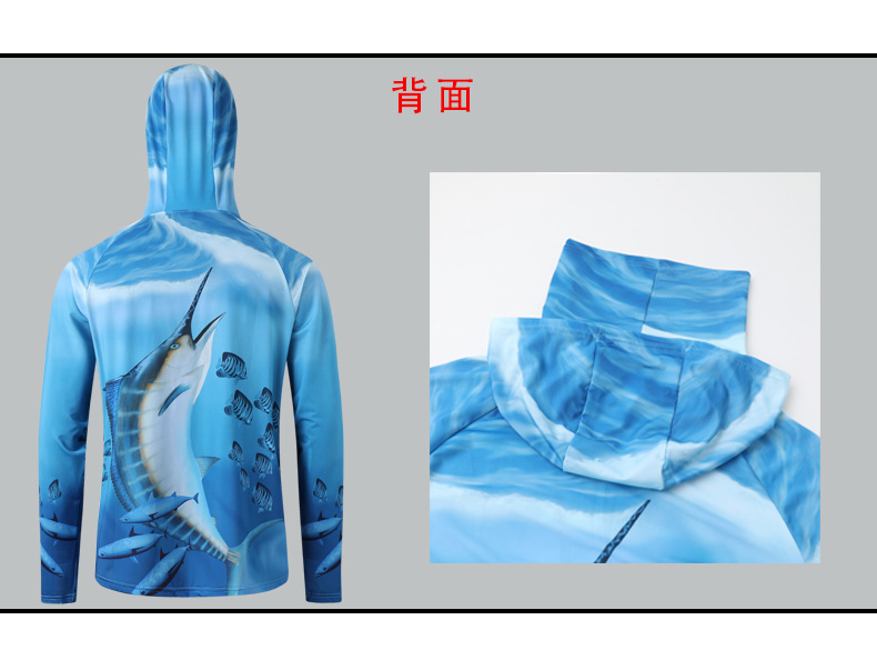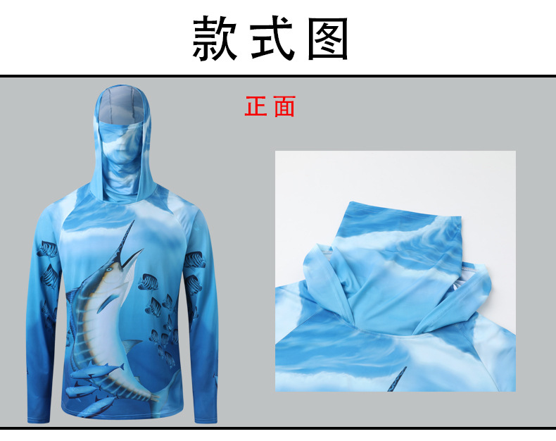 새로운 여름 야외 남자의 통기성 빠른 건조 바다 낚시 태양 보호 세트 해양 패턴 후드 태양 보호 마스크 낚시 세트스토어 가기
