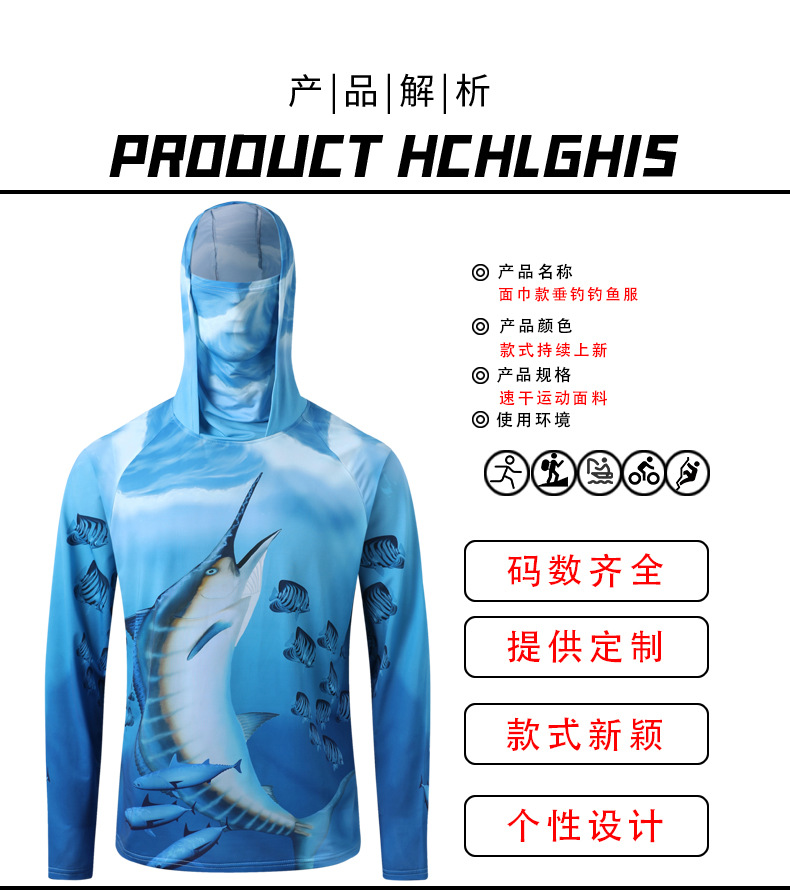 새로운 여름 야외 남자의 통기성 빠른 건조 바다 낚시 태양 보호 세트 해양 패턴 후드 태양 보호 마스크 낚시 세트