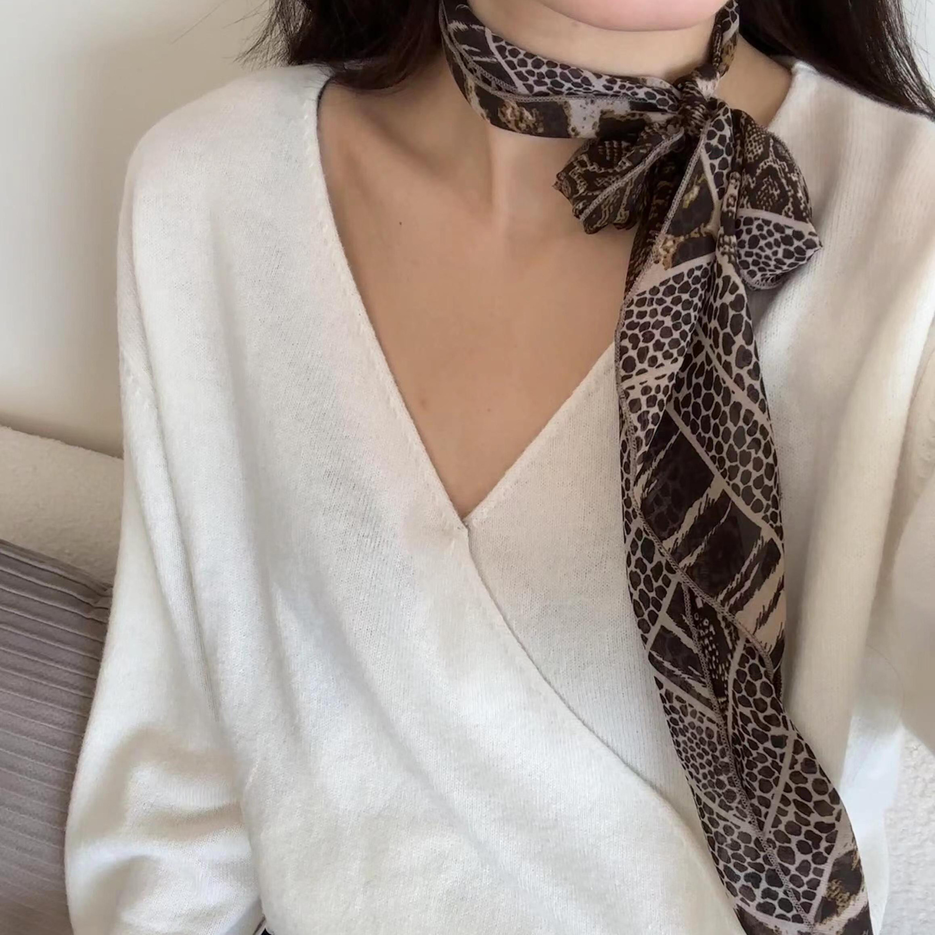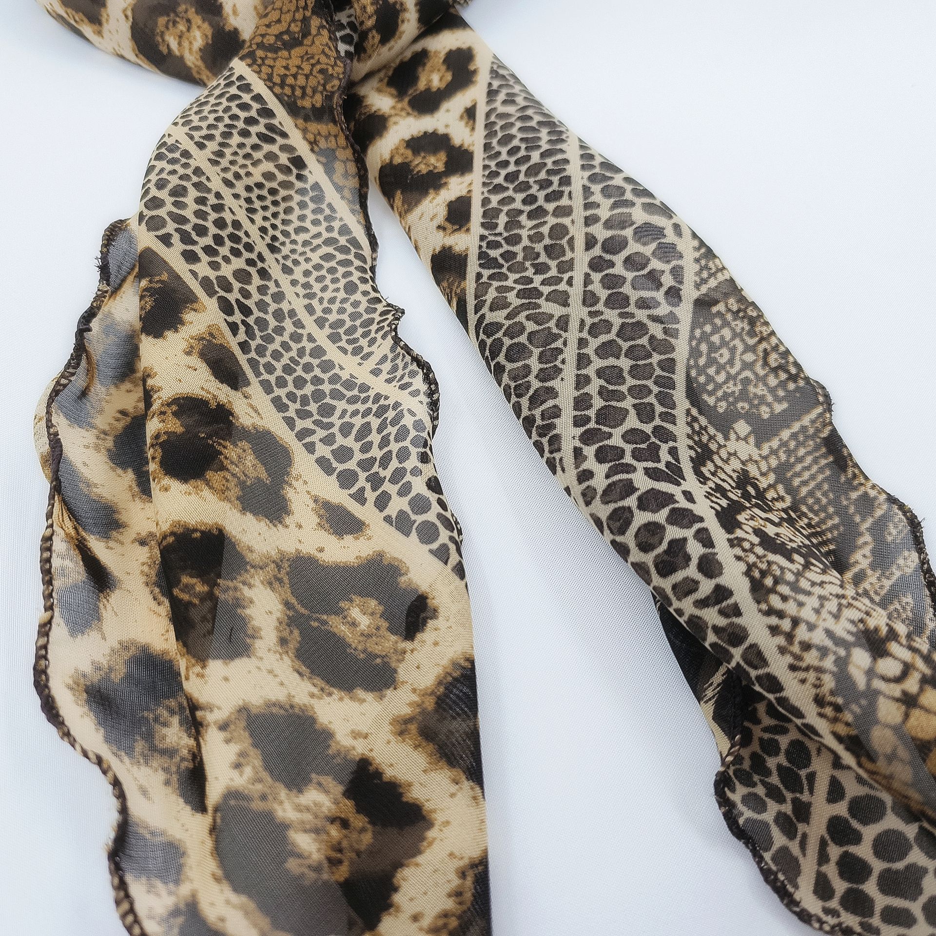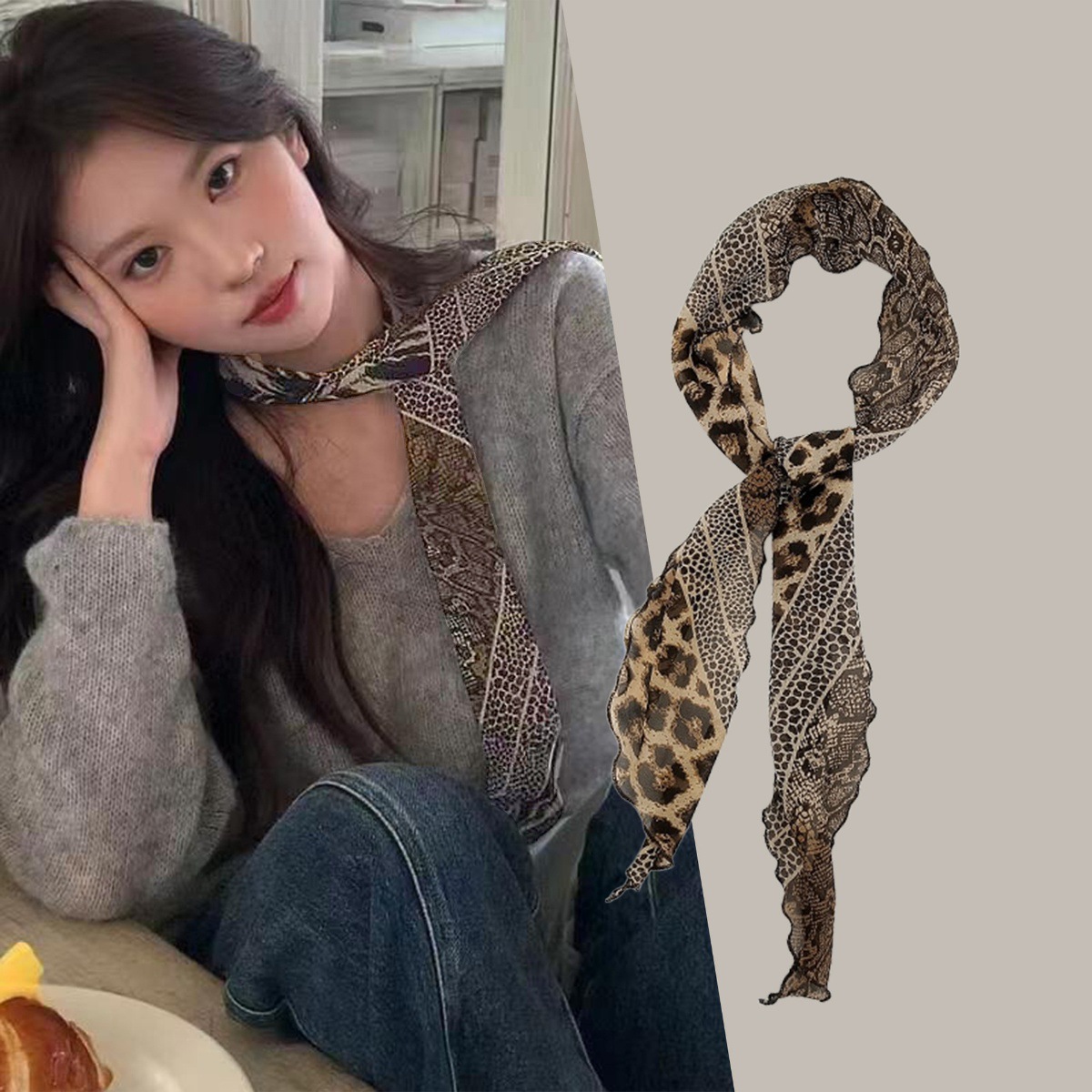 Y2K 유행 긴 설문 조사 점 스카프 여성의 봄과 여름 새로운 올 매치 레오파드 스카프 리본 메쉬 스카프 하이 엔드 센스스토어 가기