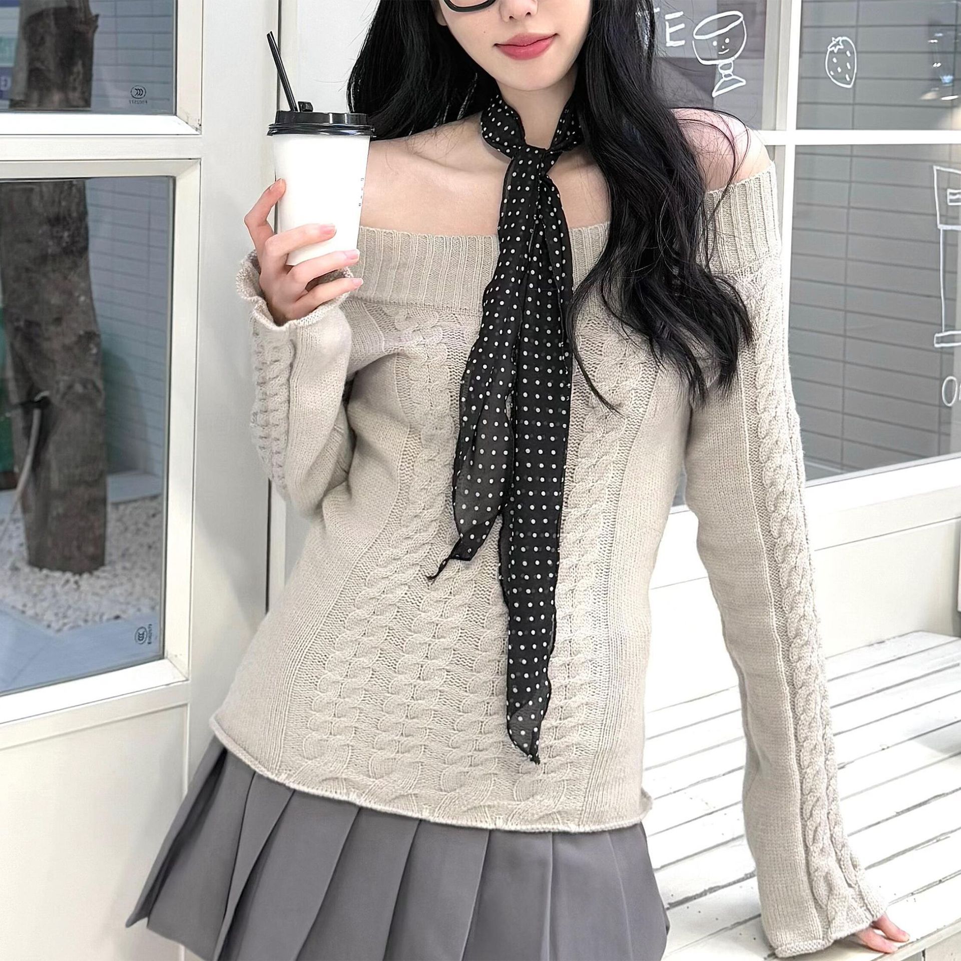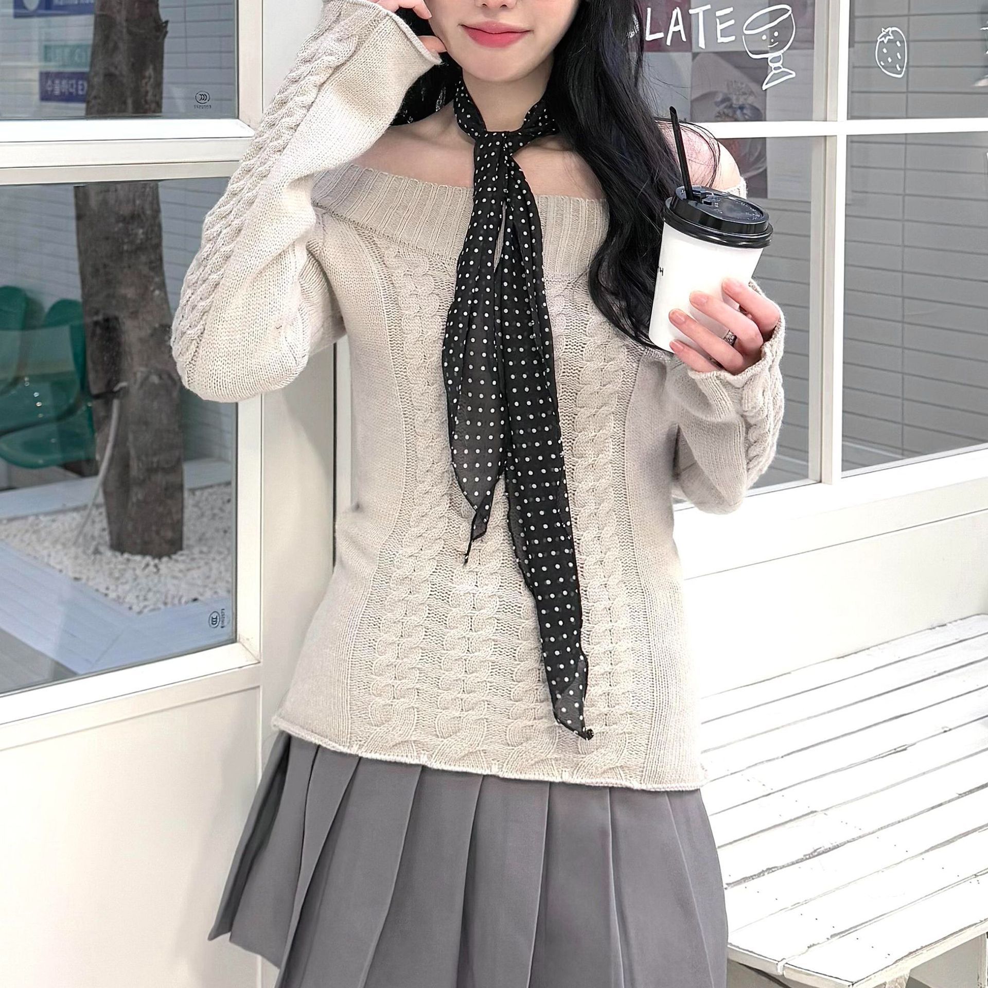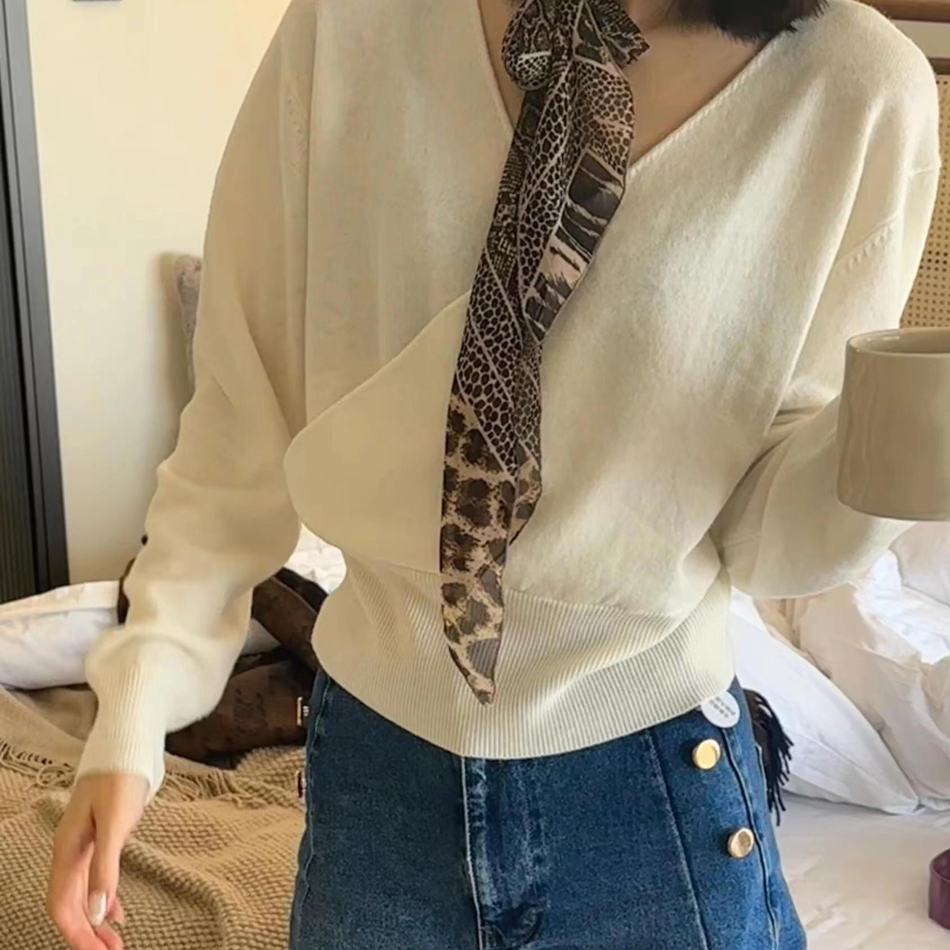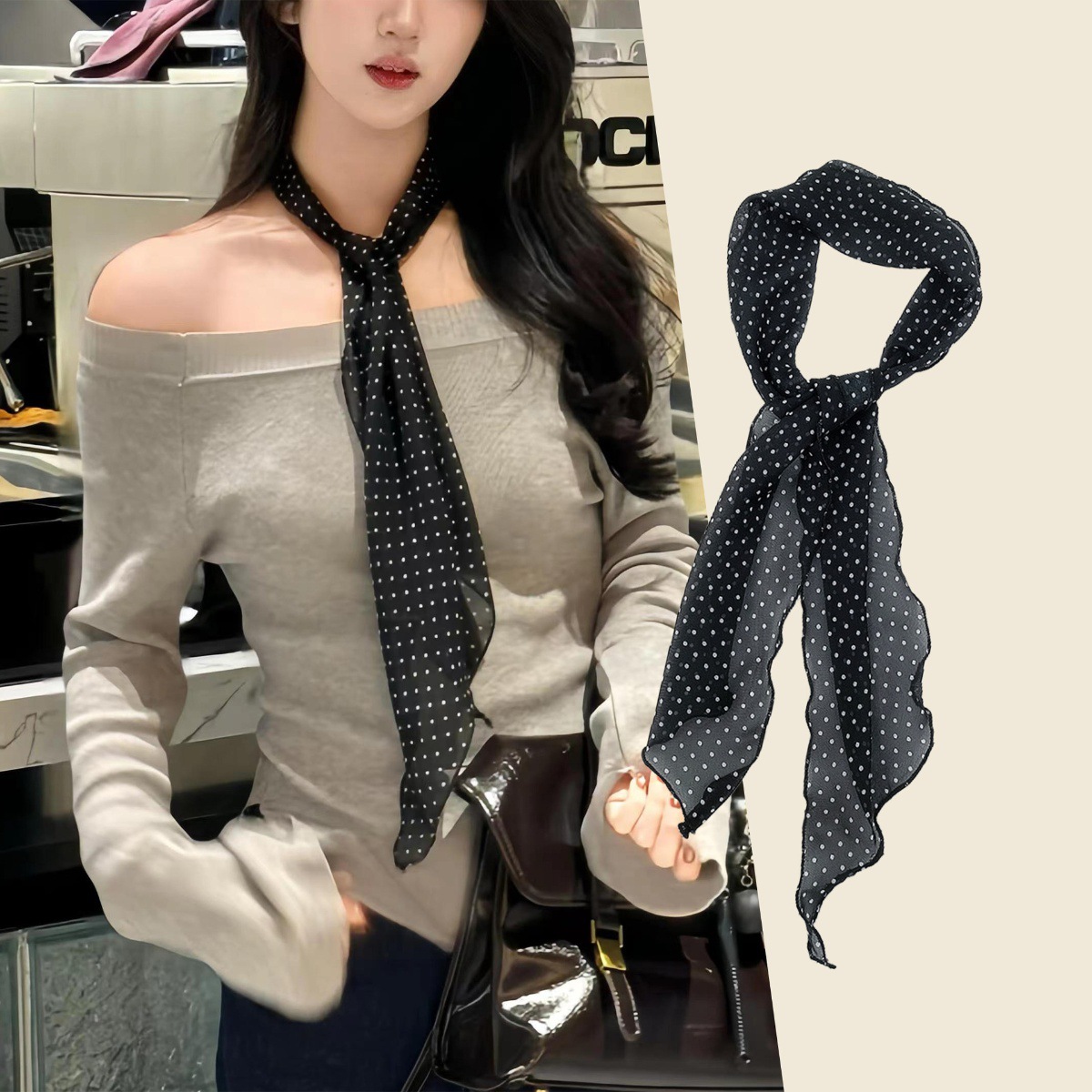 Y2K 유행 긴 설문 조사 점 스카프 여성의 봄과 여름 새로운 올 매치 레오파드 스카프 리본 메쉬 스카프 하이 엔드 센스스토어 가기