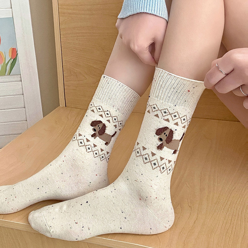 귀여운 여성 미들 튜브 페어아일랜드 한국식 만화 트렌드 일본인대학 스타킹 올 매치 코튼 양말 외부 양말스토어 가기