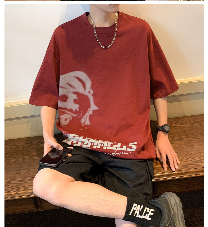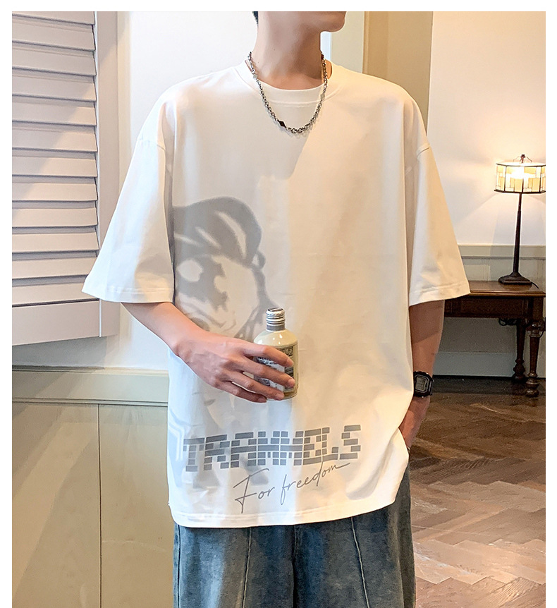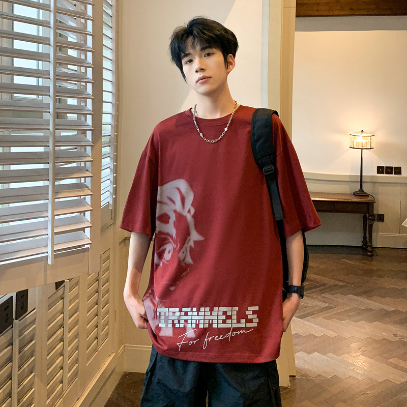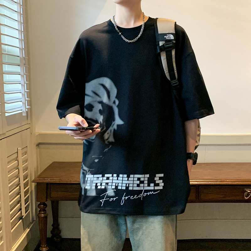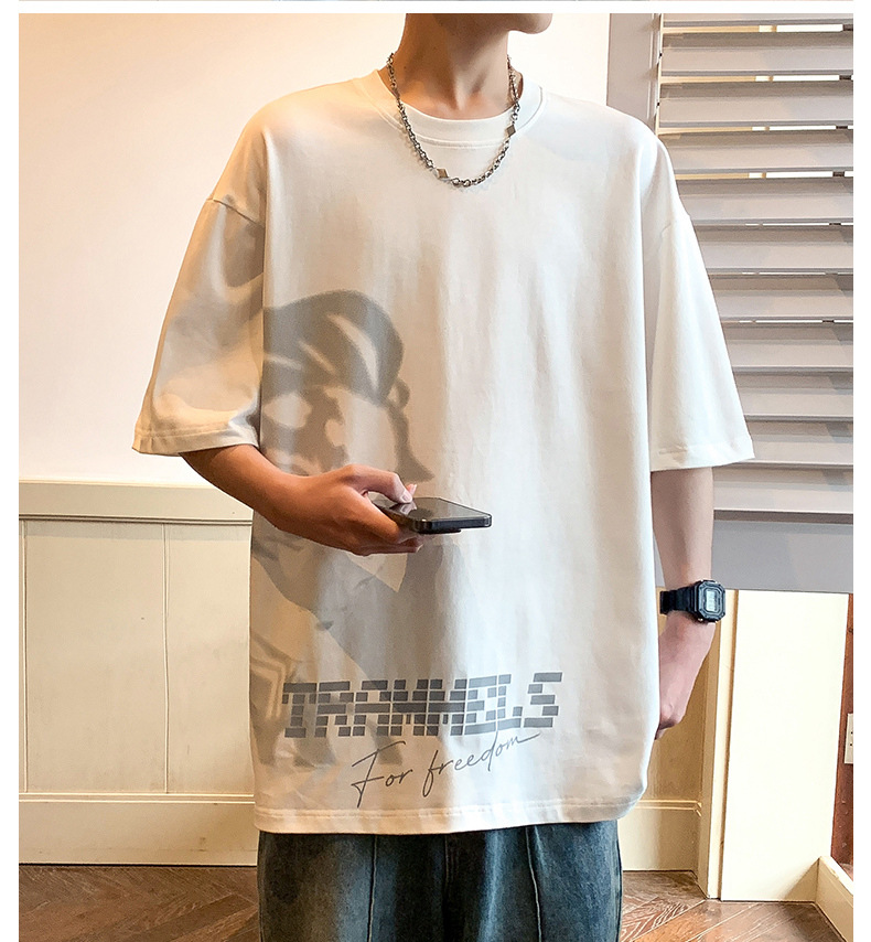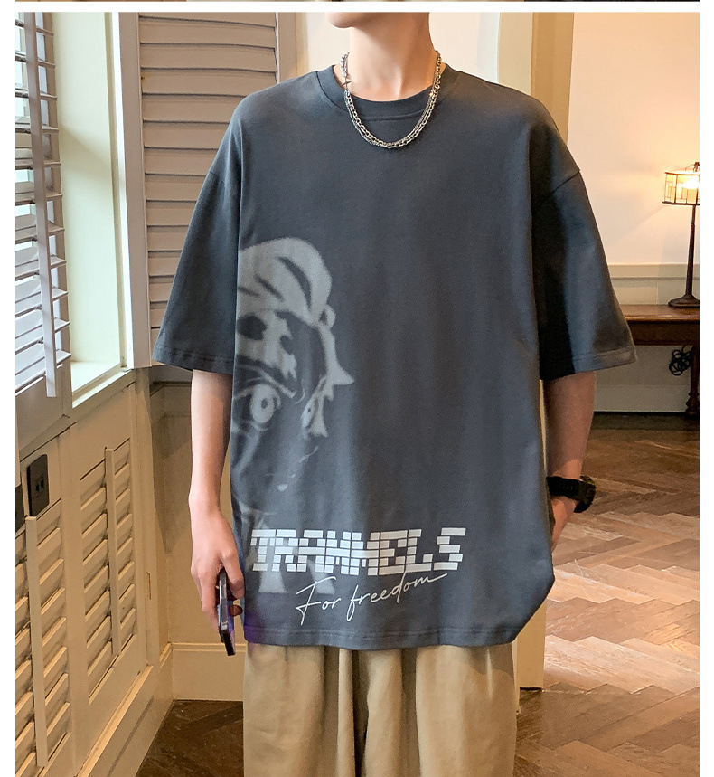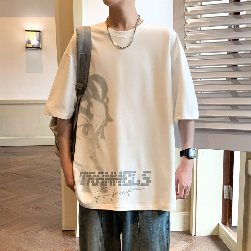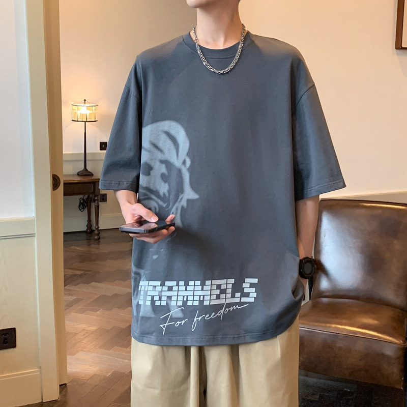 반소매 티셔츠 남성용 여름 얇은 아이스 실크 느슨한 십대 트렌디 티셔츠 반소매 캐주얼 탑스토어 가기
