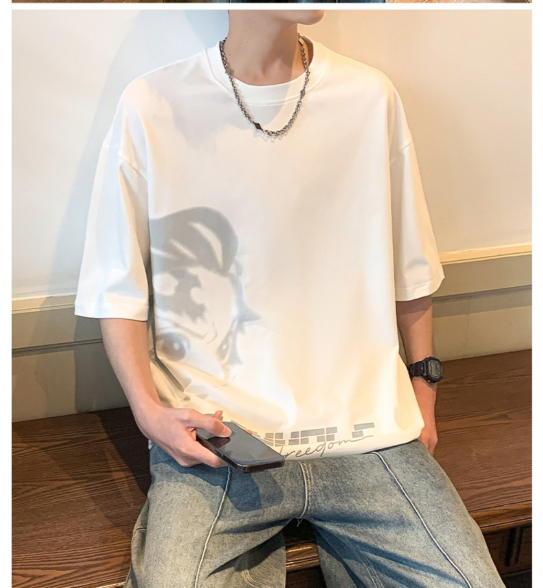 반소매 티셔츠 남성용 여름 얇은 아이스 실크 느슨한 십대 트렌디 티셔츠 반소매 캐주얼 탑
