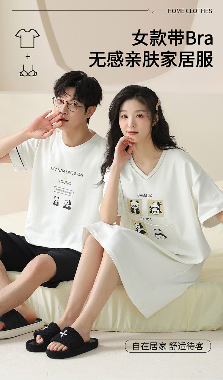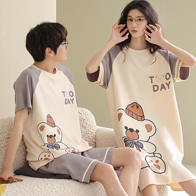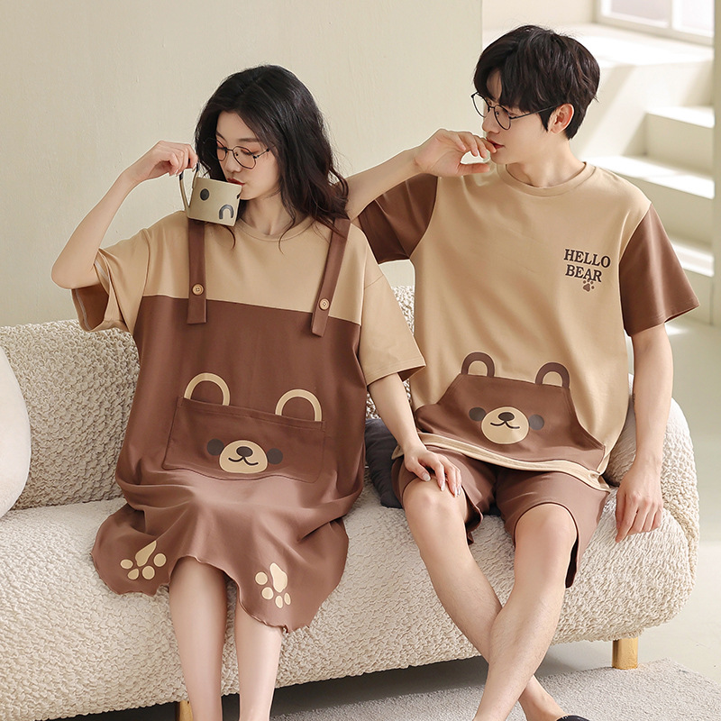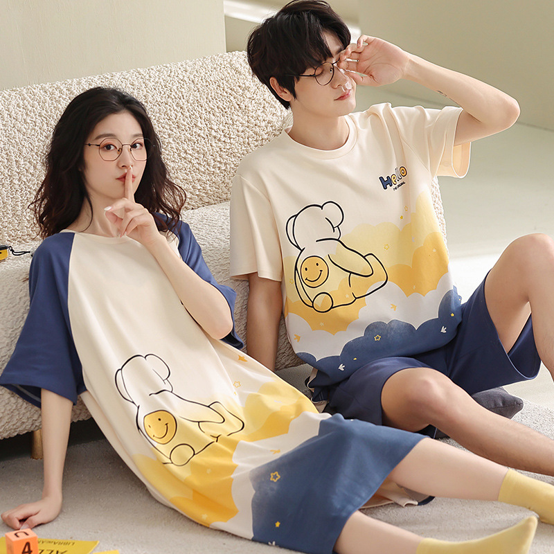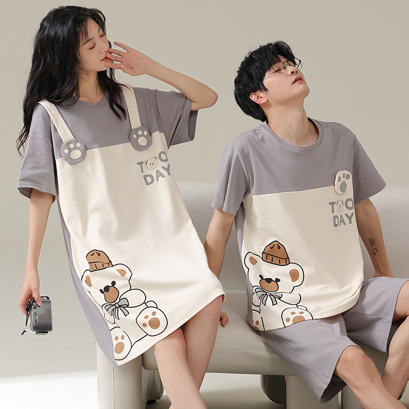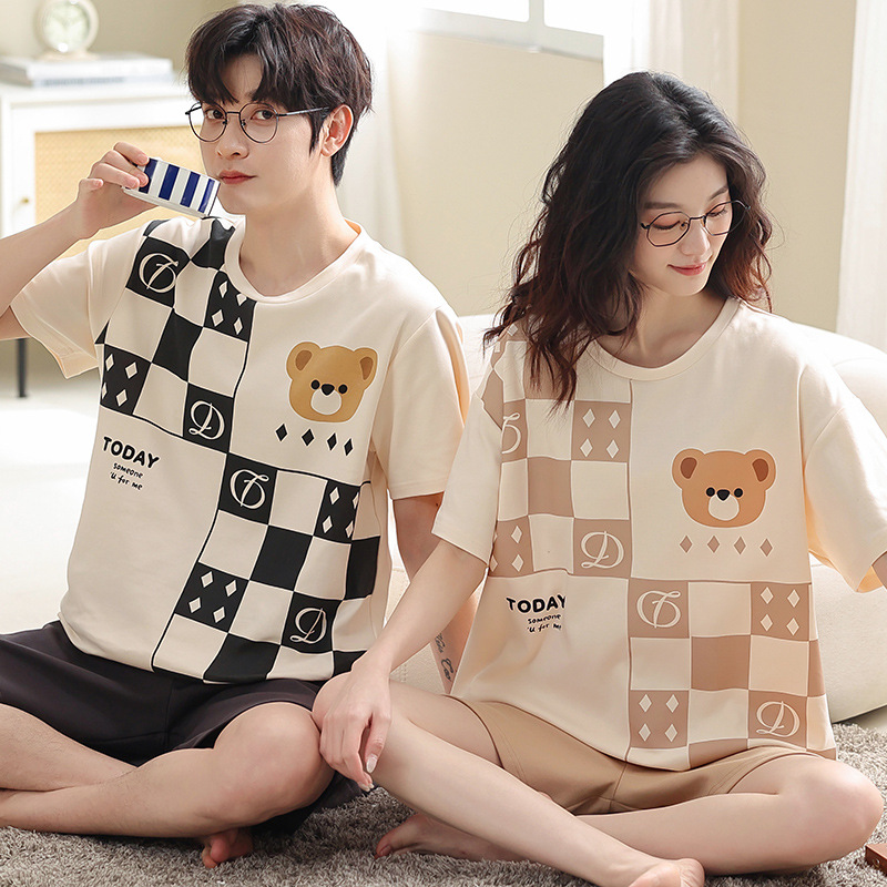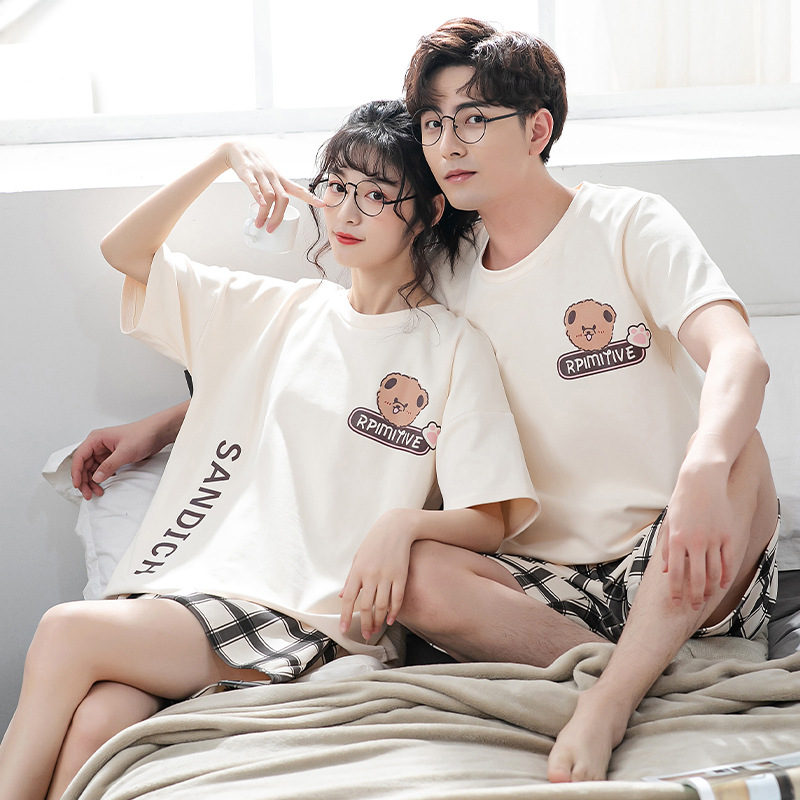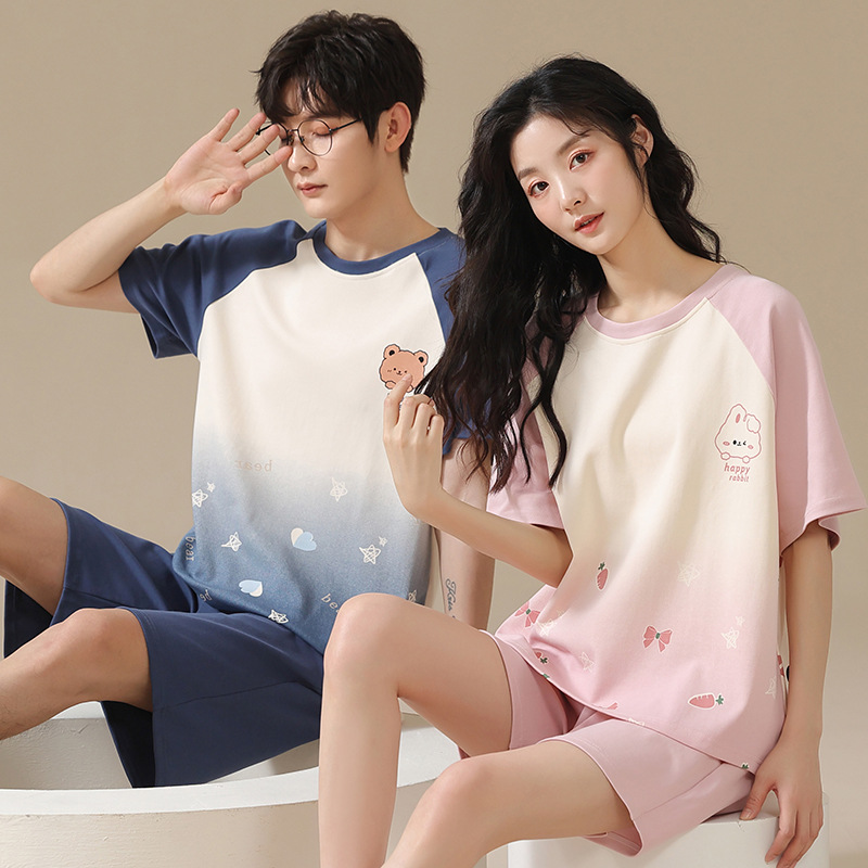 항균 여름 커플 반팔 파자마 순면 여성 반바지 캐주얼 한국식 만화 얇은 홈 의류 세트 여름스토어 가기