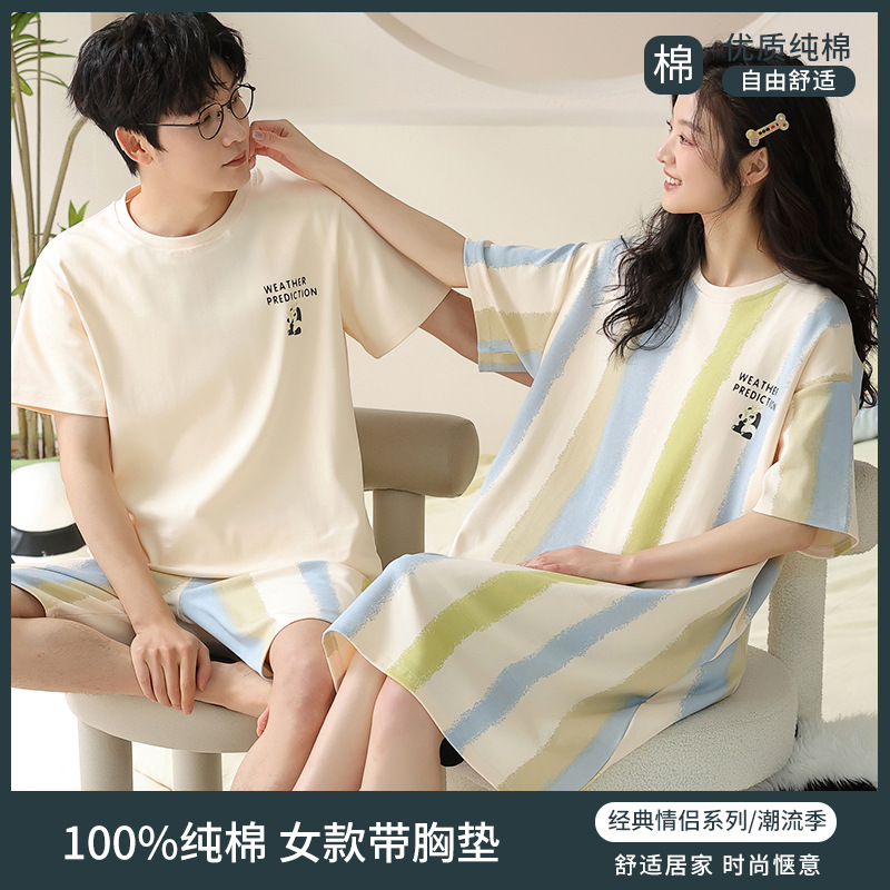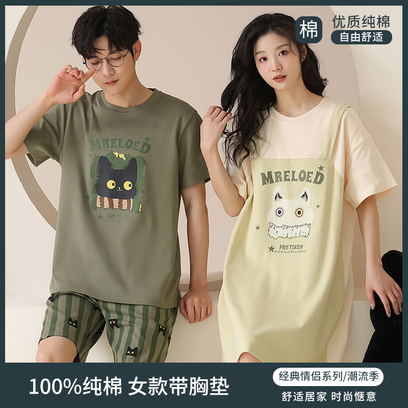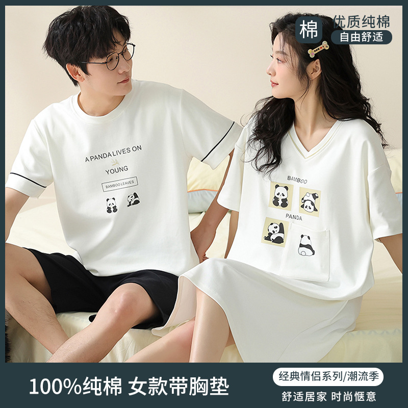 항균 여름 커플 반팔 파자마 순면 여성 반바지 캐주얼 한국식 만화 얇은 홈 의류 세트 여름