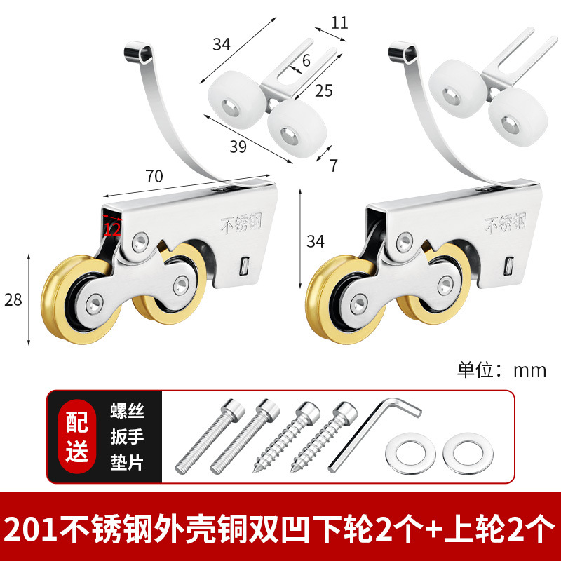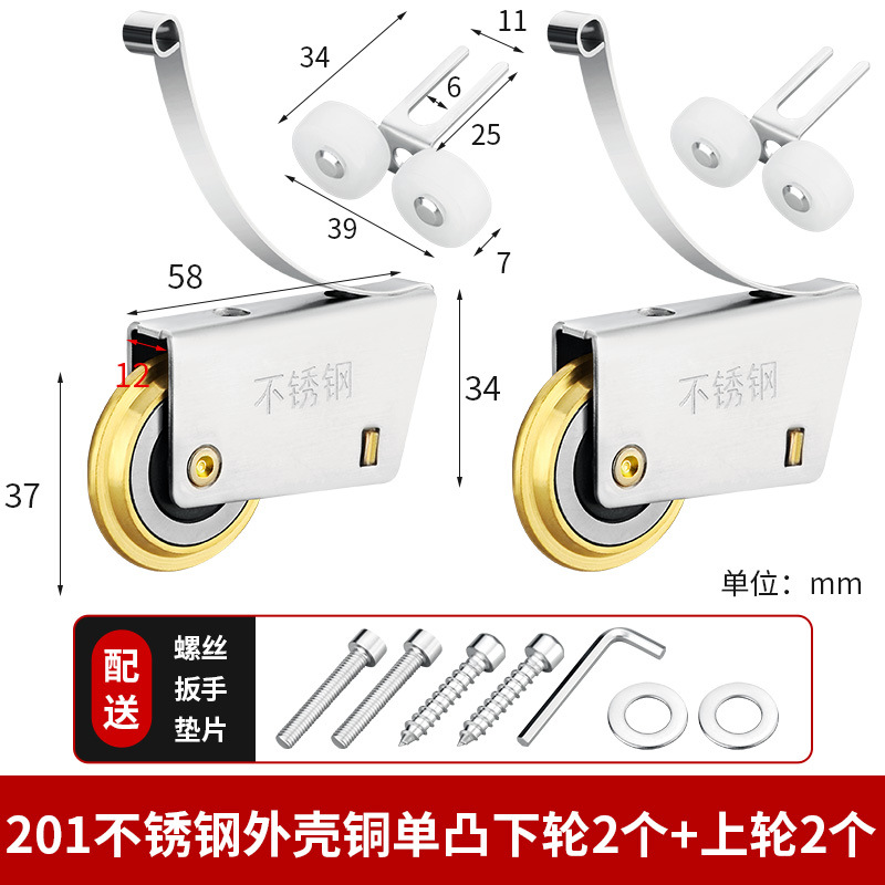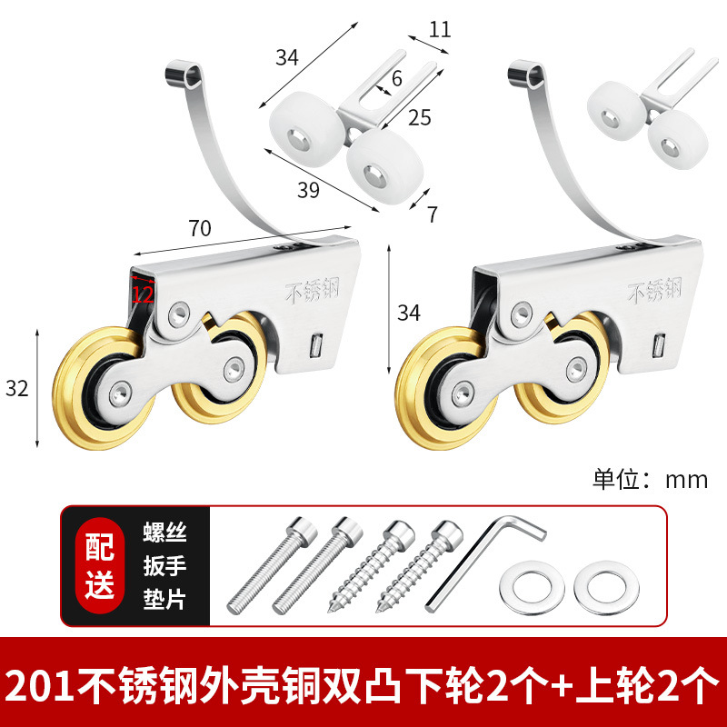 • 201 스테인레스 스틸 - 구리 단일 볼록 하부 휠 2개 + 상부 휠 2개