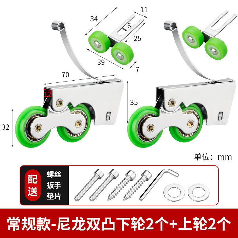• 녹색 나일론 이중 볼록 하부 휠 2개 + 상부 휠 2개