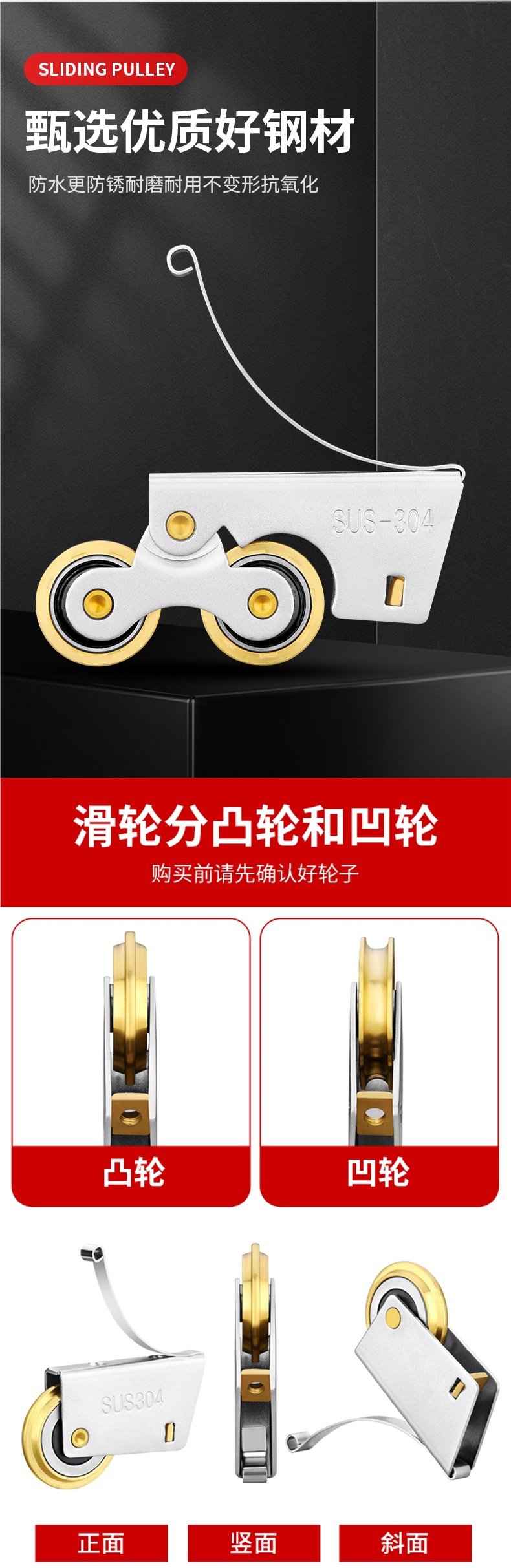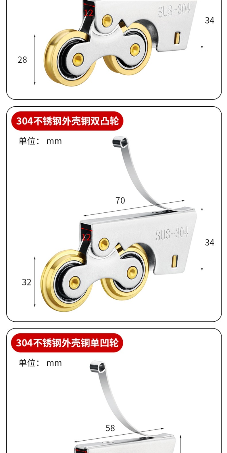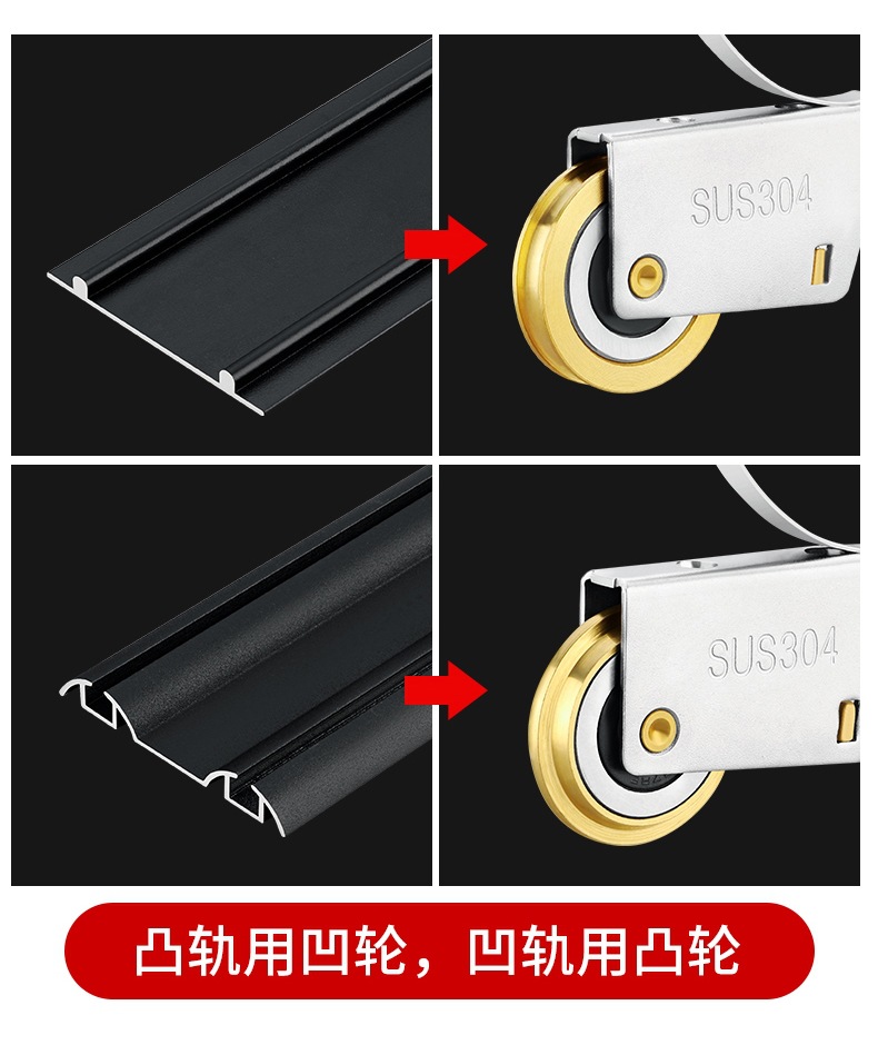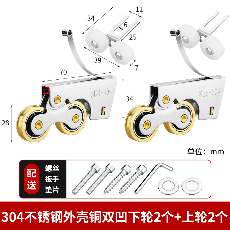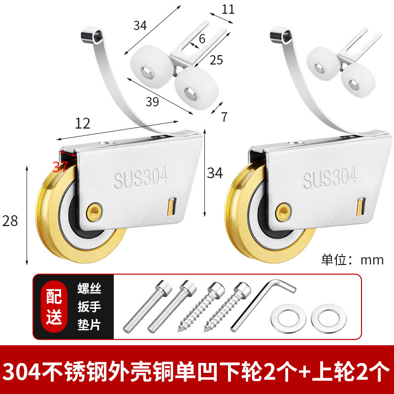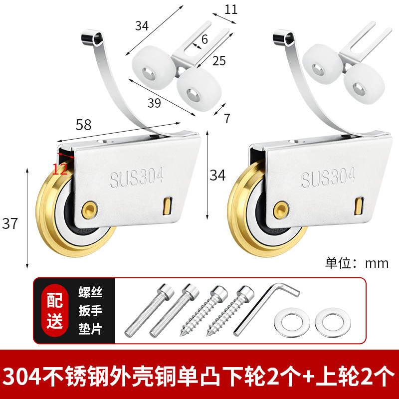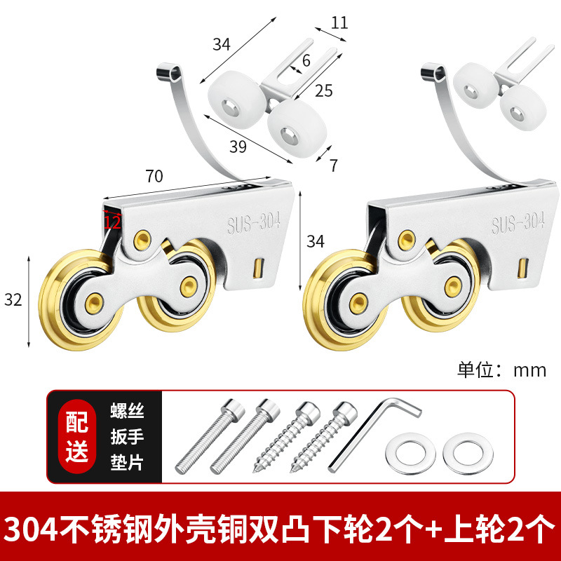 • 304 스테인레스 스틸 - 구리 이중 볼록 하부 휠 2개 + 상부 휠 2개