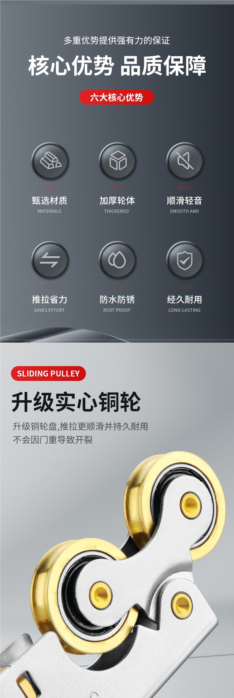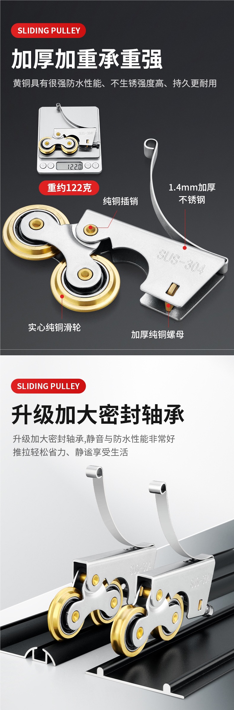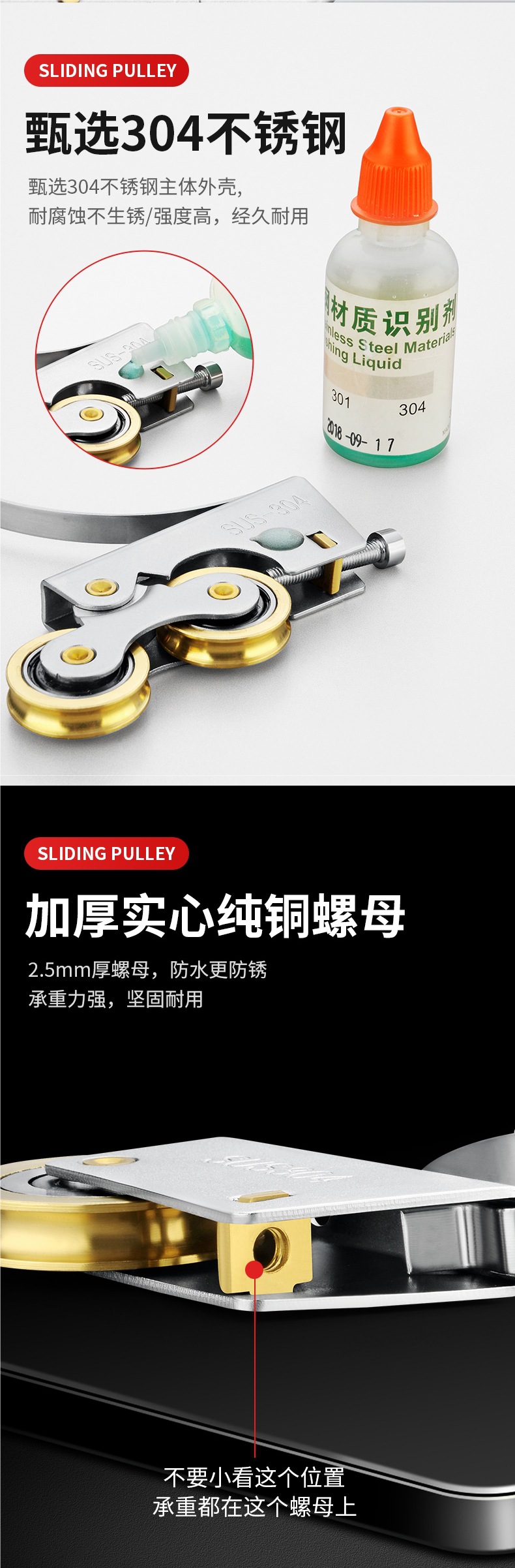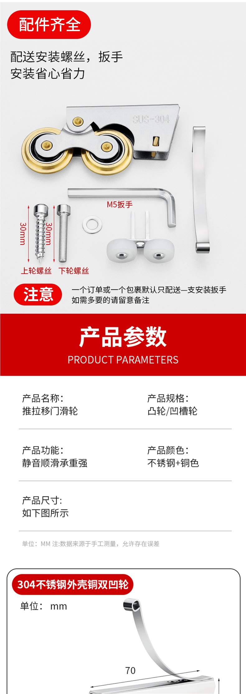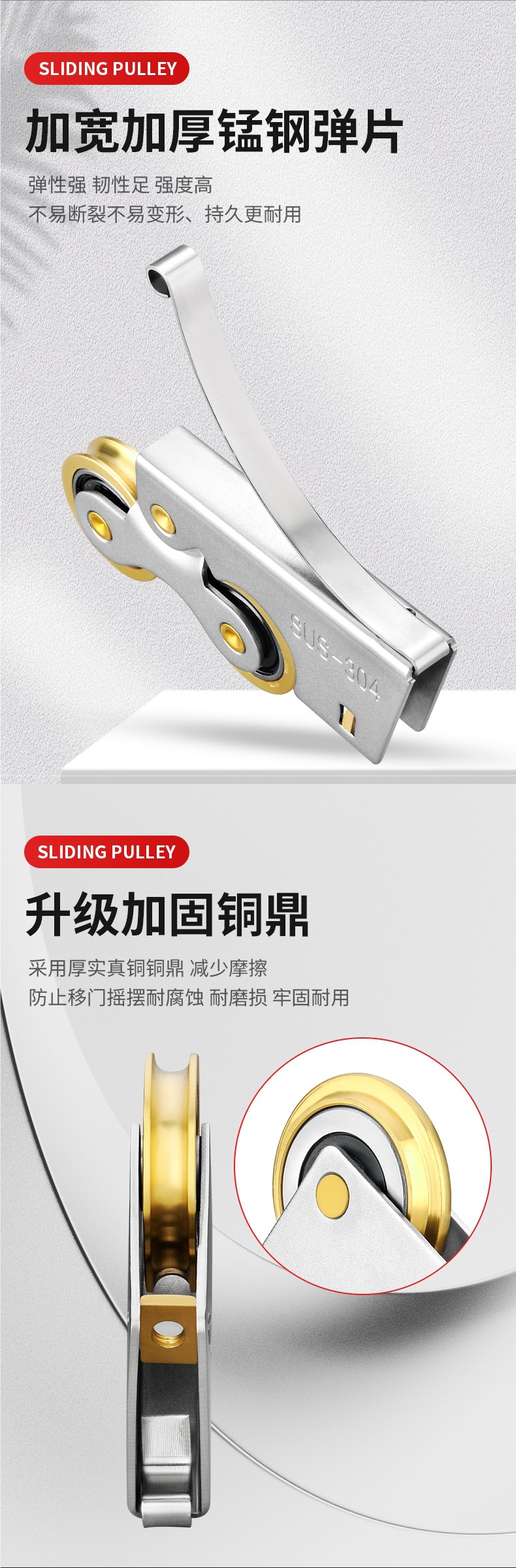 • 304 스테인레스 스틸 - 구리 이중 볼록 하부 휠 2개 + 상부 휠 2개