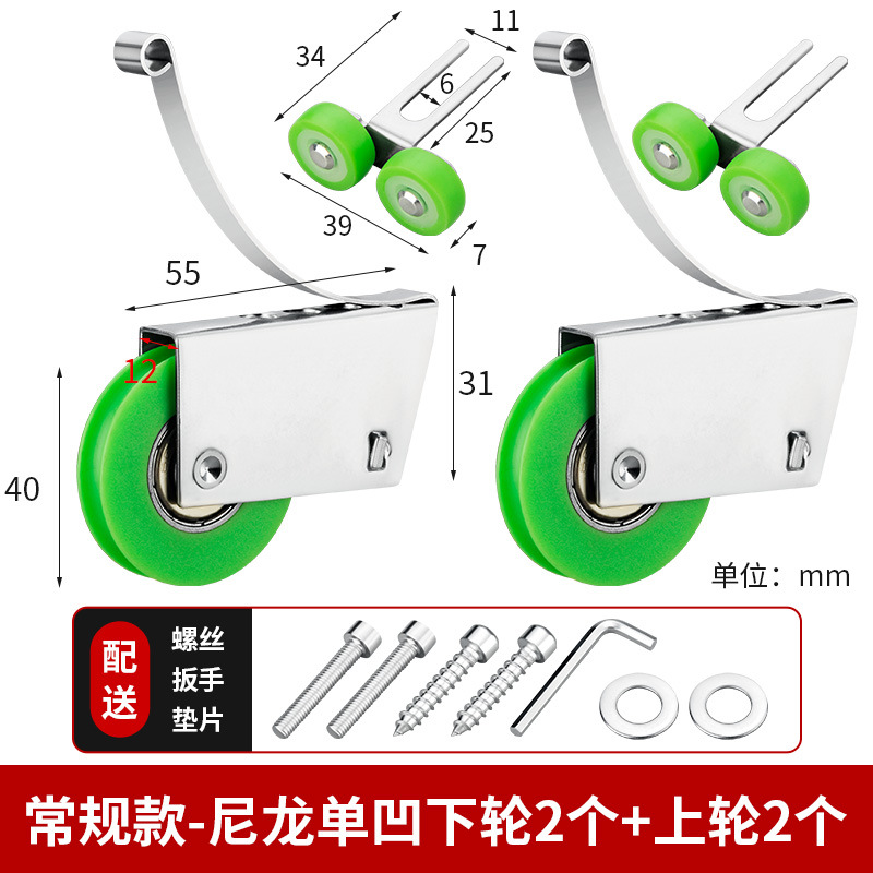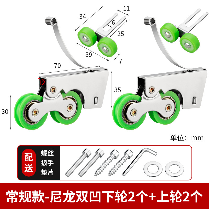 • 녹색 나일론 이중 오목 하부 휠 2개 + 상부 휠 2개