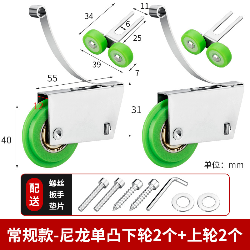 • 녹색 나일론 단일 볼록 하부 휠 2개 + 상부 휠 2개