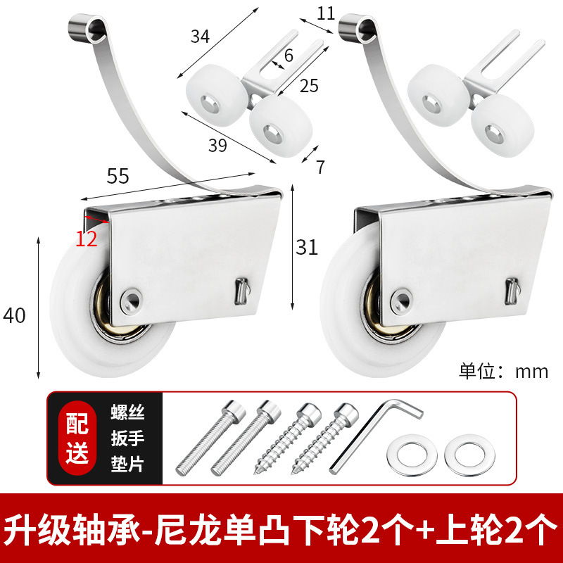욕실 유리 도어 바닥 도르래 스테인레스 스틸 휠 벽 캐비닛 슬라이딩 도어 도르래 옷장 슬라이딩 도어 트랙 하부 도르래