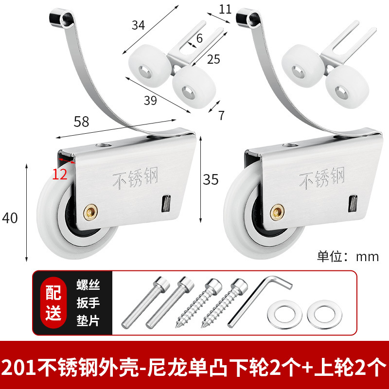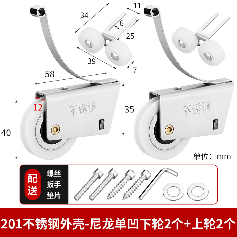 • 201 스테인레스 스틸 - 나일론 단일 오목 하부 휠 2개 + 상부 휠 2개