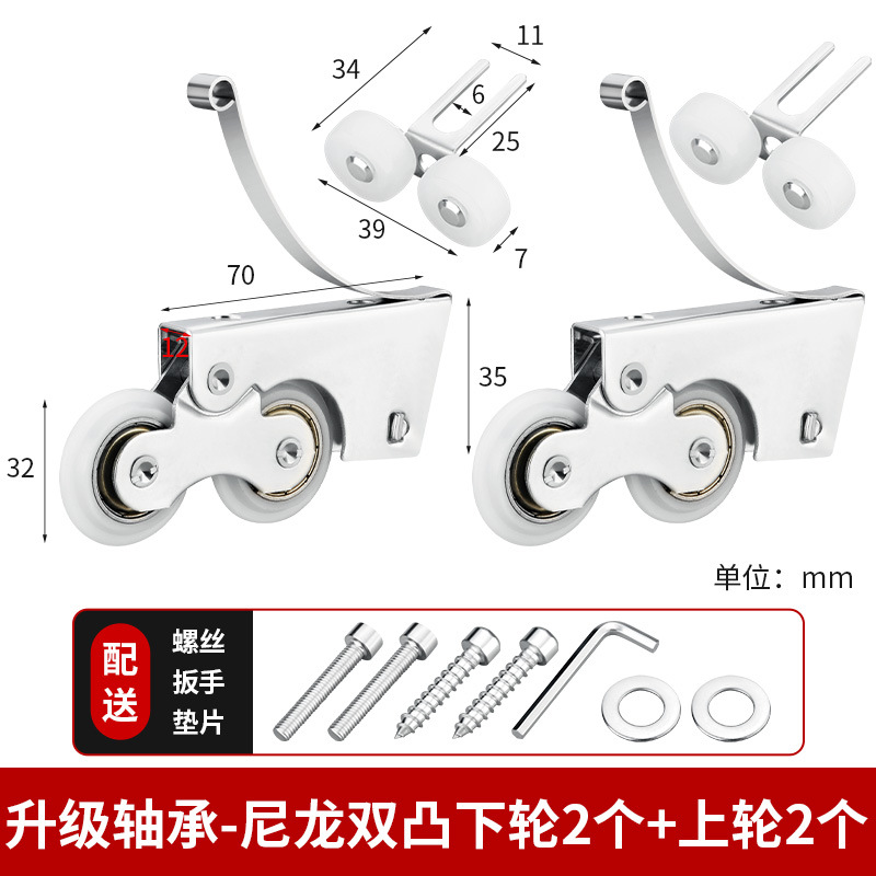 • 흰색 나일론 이중 볼록 하부 휠 2개 + 상부 휠 2개