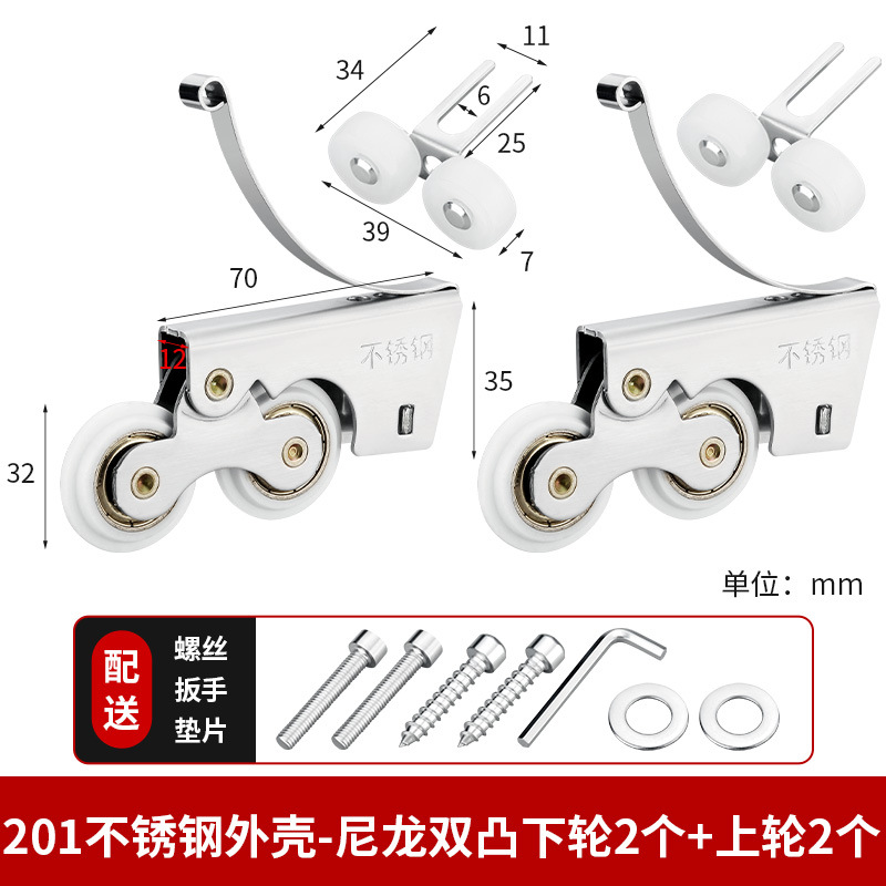 • 201 스테인레스 스틸 - 나일론 이중 볼록 하부 휠 2개 + 상부 휠 2개