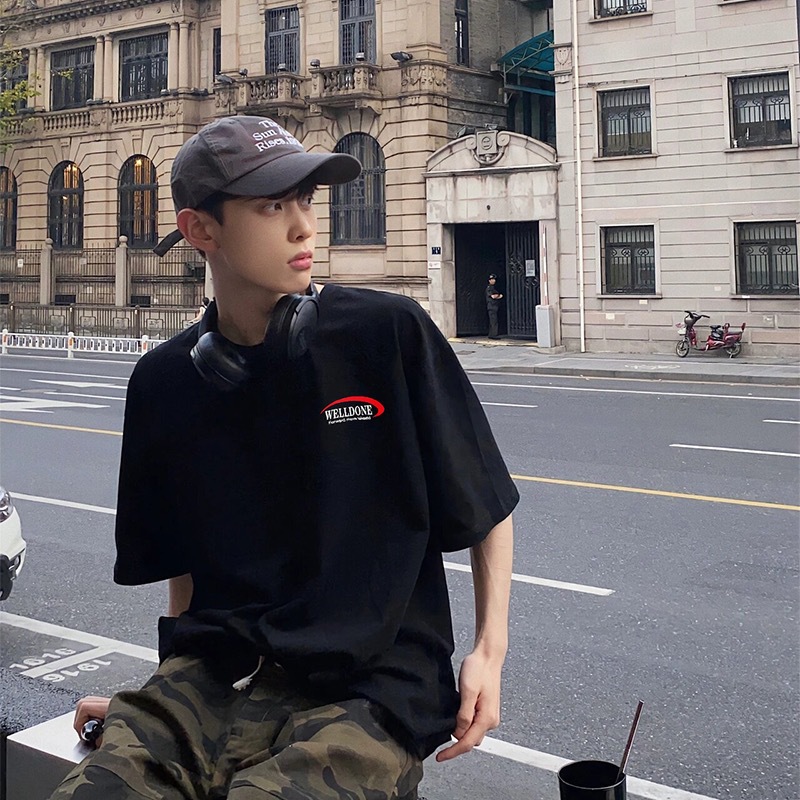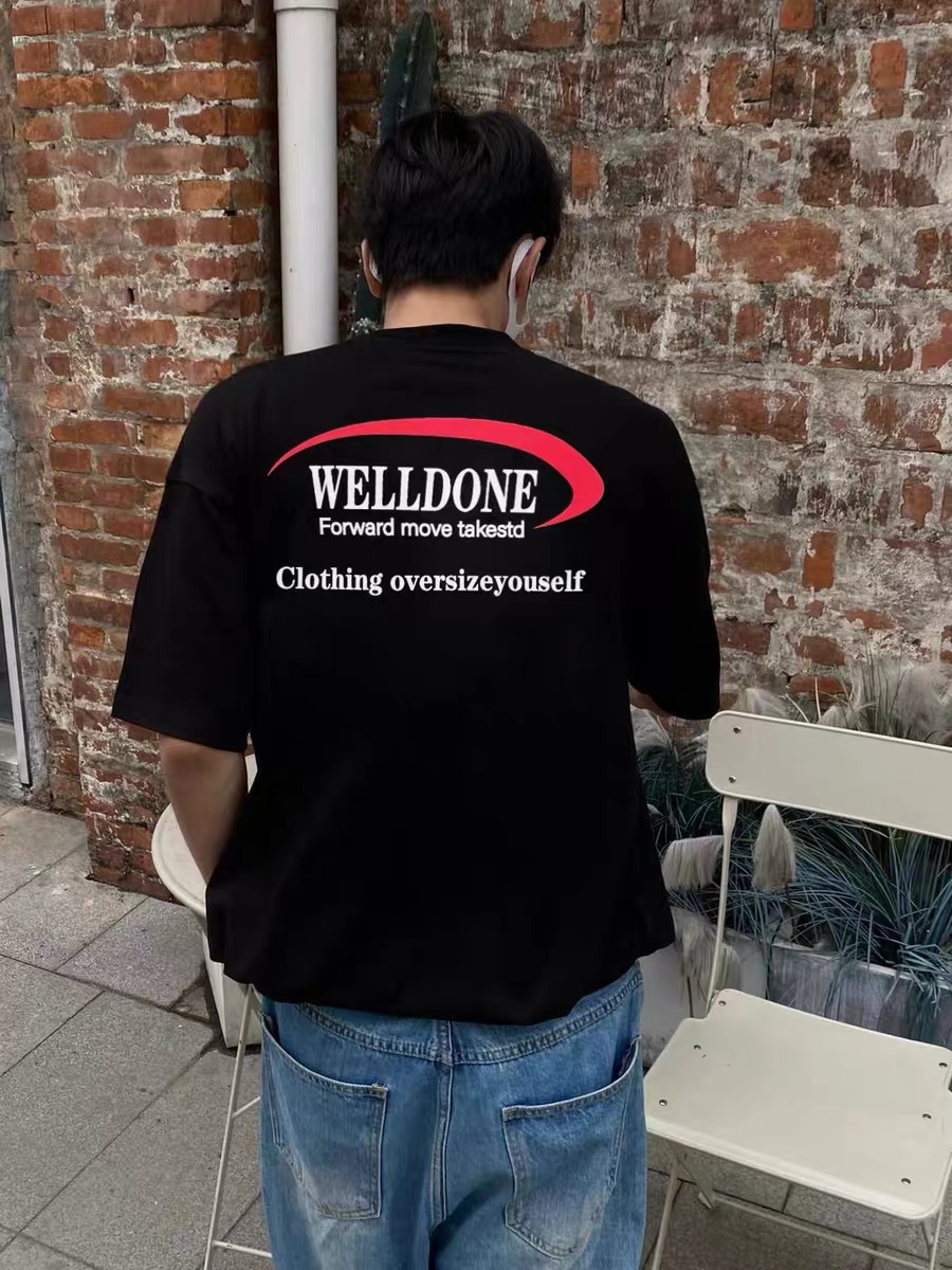 봄과 여름 2024 새로운 거꾸로 된 후크 편지 반팔 티셔츠 캐주얼 느슨한 커플 재킷스토어 가기