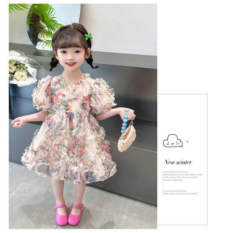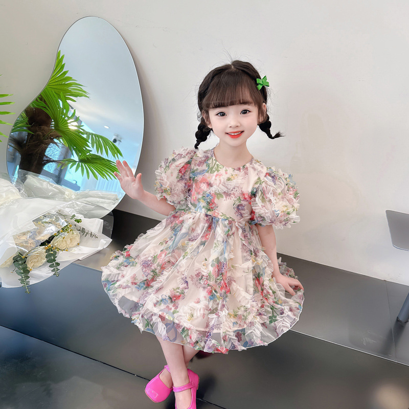 소녀 3 차원 꽃 요정 원피스 2025 여름 새로운 패션 소녀 세련된 꽃 공주 원피스 여름 원피스스토어 가기