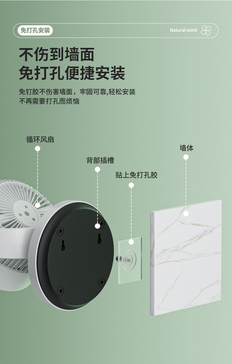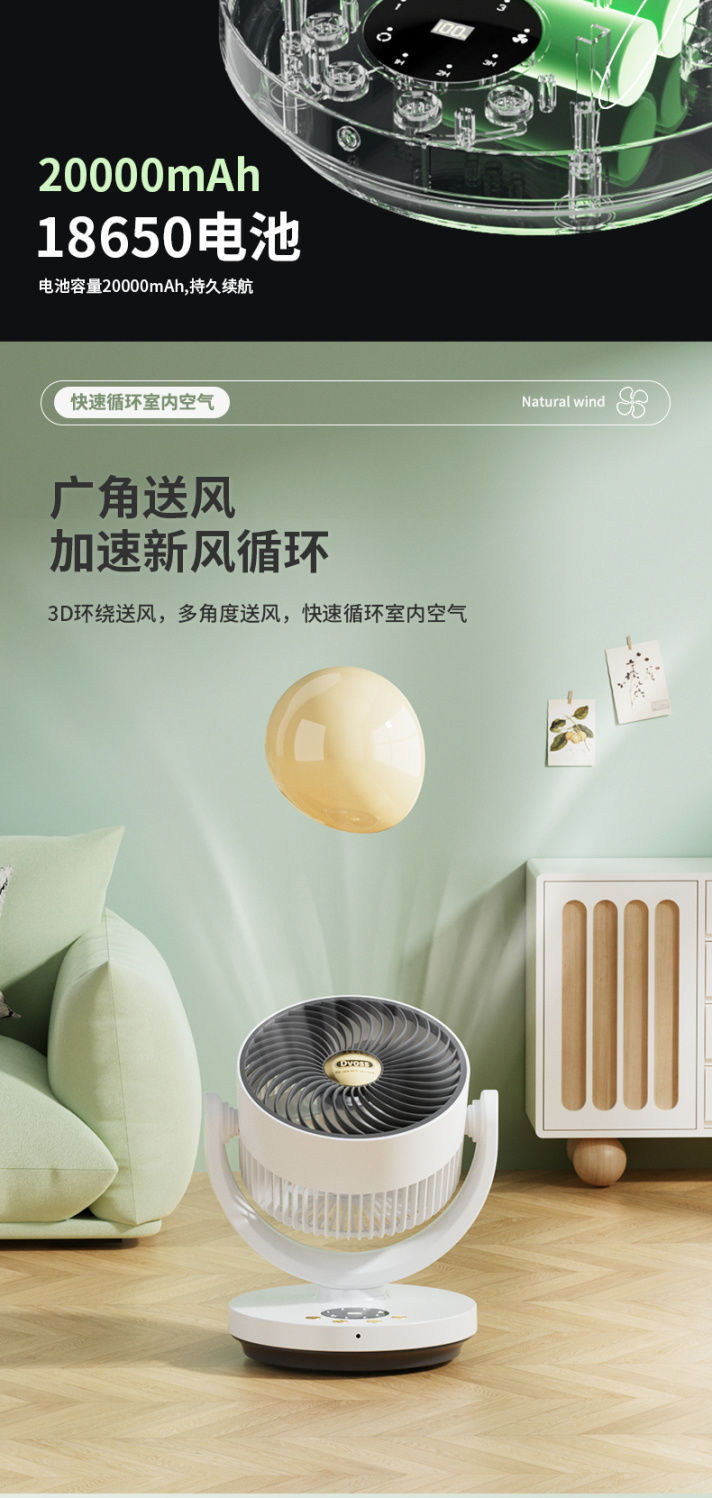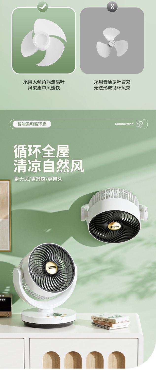 데스크탑 흔들리는 헤드 팬 조명 사운드 사무실 주방 벽걸이 형 충전 바람 순환 팬 가정용 야외 공기스토어 가기