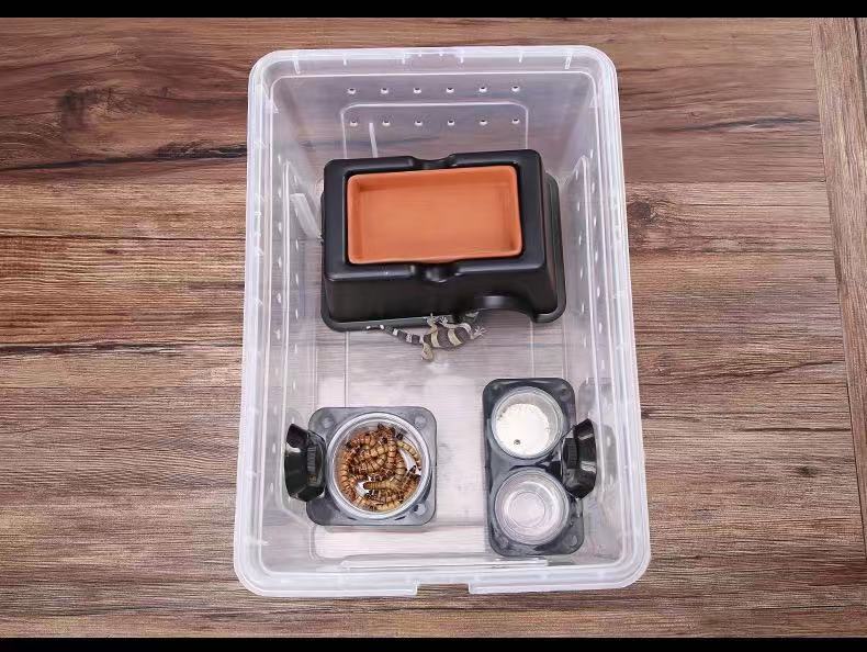 파충류 먹이 상자 먹이 상자 뚜껑 애완 동물 뱀 거미 전갈 슈공 달팽이 곤충 거북이 탱크 어항으로 애완 동물 상자 등반