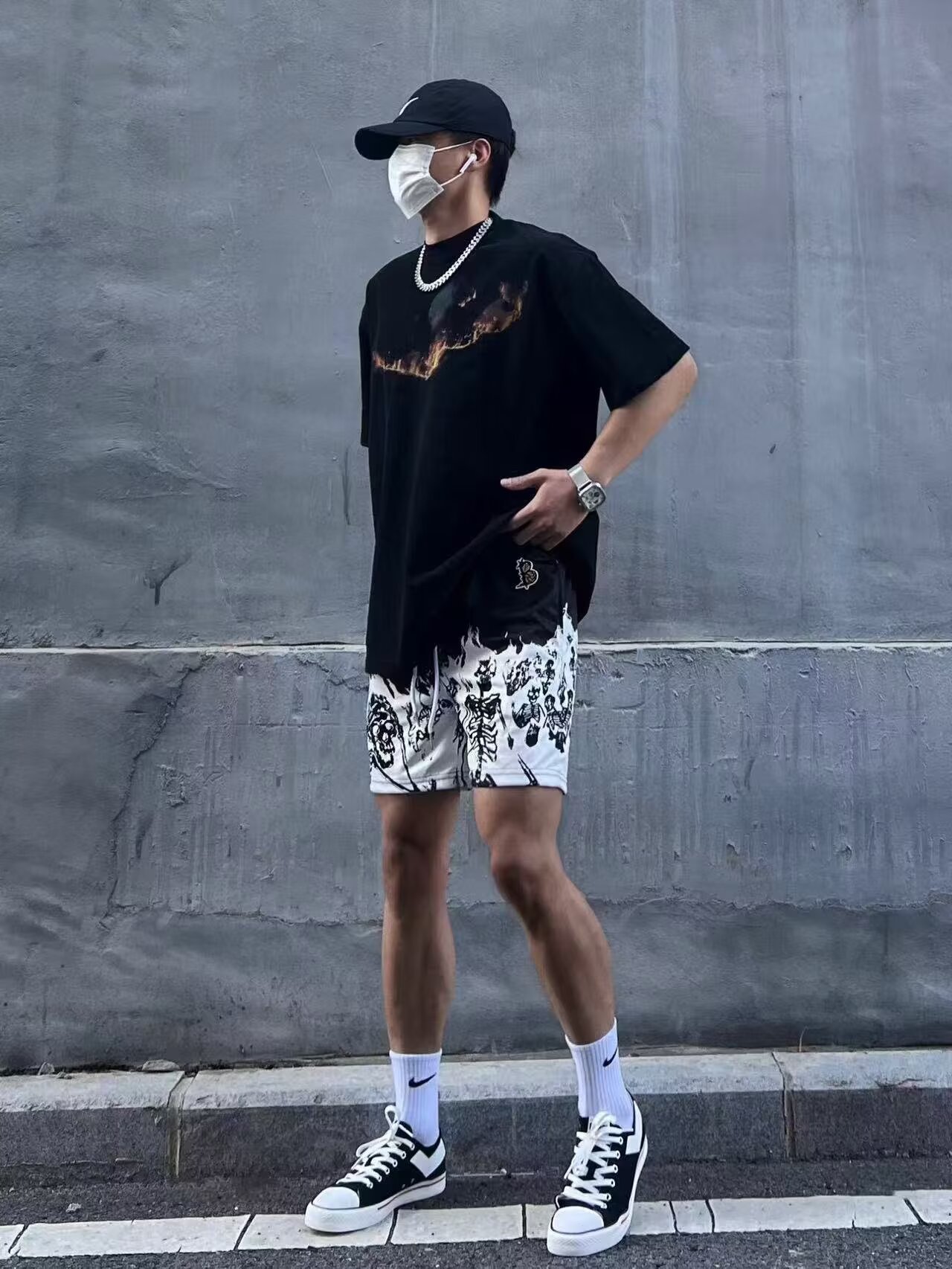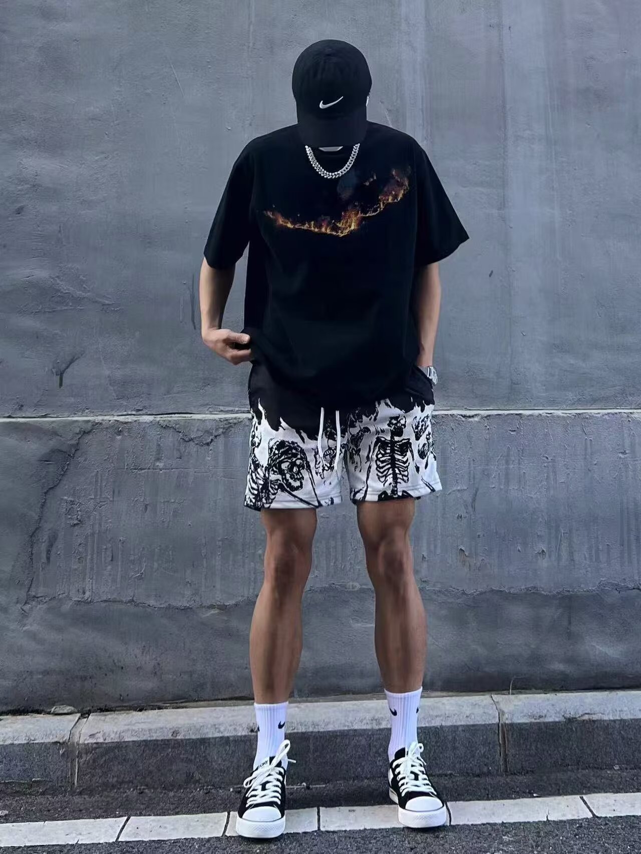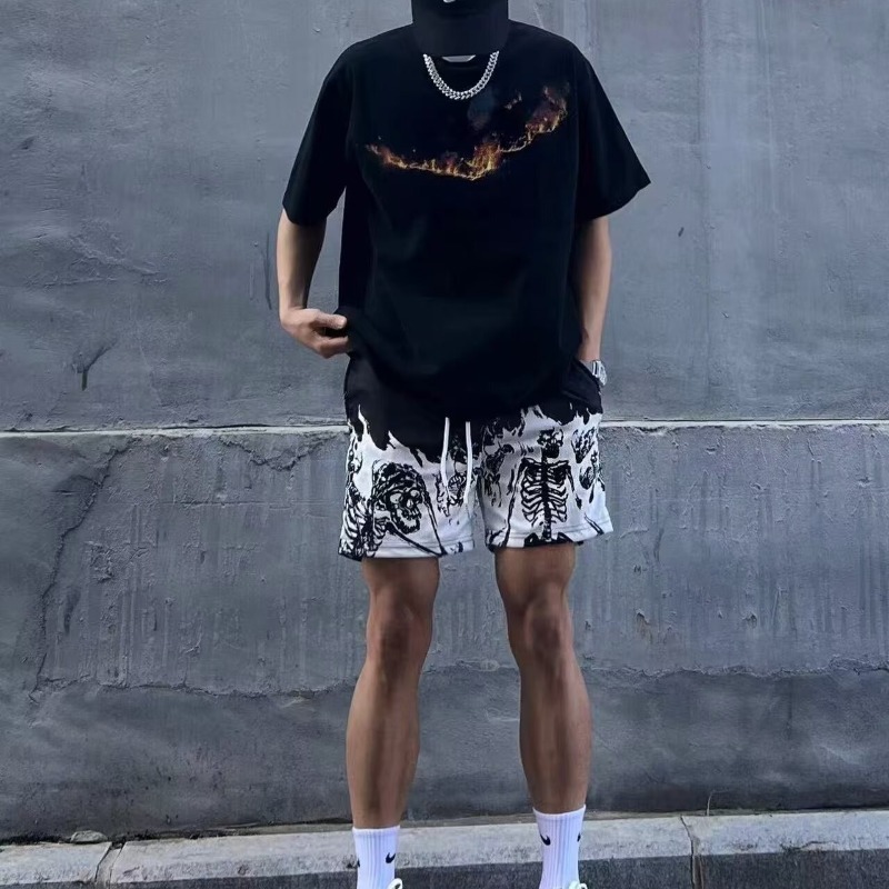 두개골 불꽃 미국 반바지 남자 거리 패션 브랜드 여름이지만 무릎 농구 바지 훈련 스포츠 쿼드 바지스토어 가기